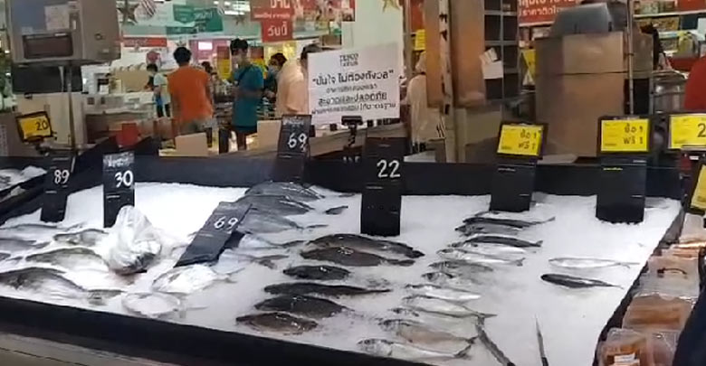 หลังจากการระบาดของโควิด-19 ระลอกใหม่ในพื้นที่ต้นทางอาหารทะเล จนส่งผลกระทบกับความไม่มั่นใจของผู้บริโภค จากการสำรวจการจำหน่ายสินค้าภายในห้างค้าปลีก ย่านลาดพร้าววันนี้พบว่า แผนกอาหารสดรวมถึงอาหารทะเล ยังคงมีการวางจำหน่ายสินค้าปกติ ในส่วนของอาหารทะเลนั้นได้มีการติดป้ายอาหารทะเลสะอาดปลอดภัยผ่านการตรวจสอบได้มาตรฐาน เพื่อเป็นการสร้างความมั่นใจให้กับผู้บริโภค ในขณะที่สินค้ากุ้งขาวไซส์ใหญ่ที่มีการนำมาวางจำหน่ายมีลูกค้าเลือกซื้อไปทั้งหมดแล้ว โดยกุ้งขาวใหญ่ขายกิโลกรัมละ 249 บาท หมูเนื้อแดง กิโลกรัมละ 125 บาท และสำหรับการจำหน่ายสินค้าในช่วงเทศกาลปีใหม่ทางผู้ประกอบการได้มีการร่วมมือกับกระทรวงพาณิชย์ในการลดราคาสินค้าที่มีความจำเป็น เพื่อบรรเทาค่าครองชีพให้กับประชาชน โดยสินค้ากระเช้าของขวัญปีใหม่ช่วงนี้มีการจัด กิจกรรมส่งเสริมการขาย ซื้อ 1 ชิ้นแถม 1 ชิ้น และลดราคาเป็นพิเศษ