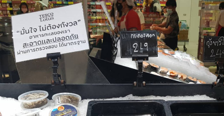ห้างติดป้ายอาหารทะเลปลอดภัยขายกุ้งปกติ