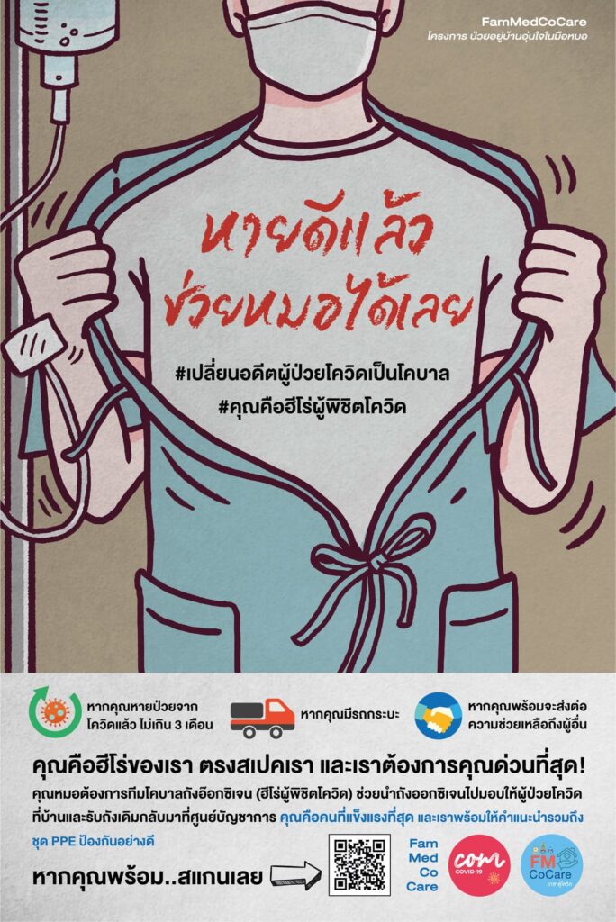 วันนี้เราขอบอกเล่าโครงการดีๆอย่าง หายดีแล้วช่วยหมอได้เลย #เปลี่ยนอดีตผู้ป่วยโควิดเป็นโคบาล #คุณคือฮีโร่ผู้พิชิตโควิด เป็นการร่วมมือกันระหว่าง FamMedCoCare “ป่วยอยู่บ้านอุ่นใจในมือหมอ” โดยมูลนิธิ IHRI และบุคลากรทางการแพทย์ รวมถึงจิตอาสากว่า 800 ชีวิต ภายใต้ความร่วมมือเครือข่ายแพทย์เวชศาสตร์ครอบครัว