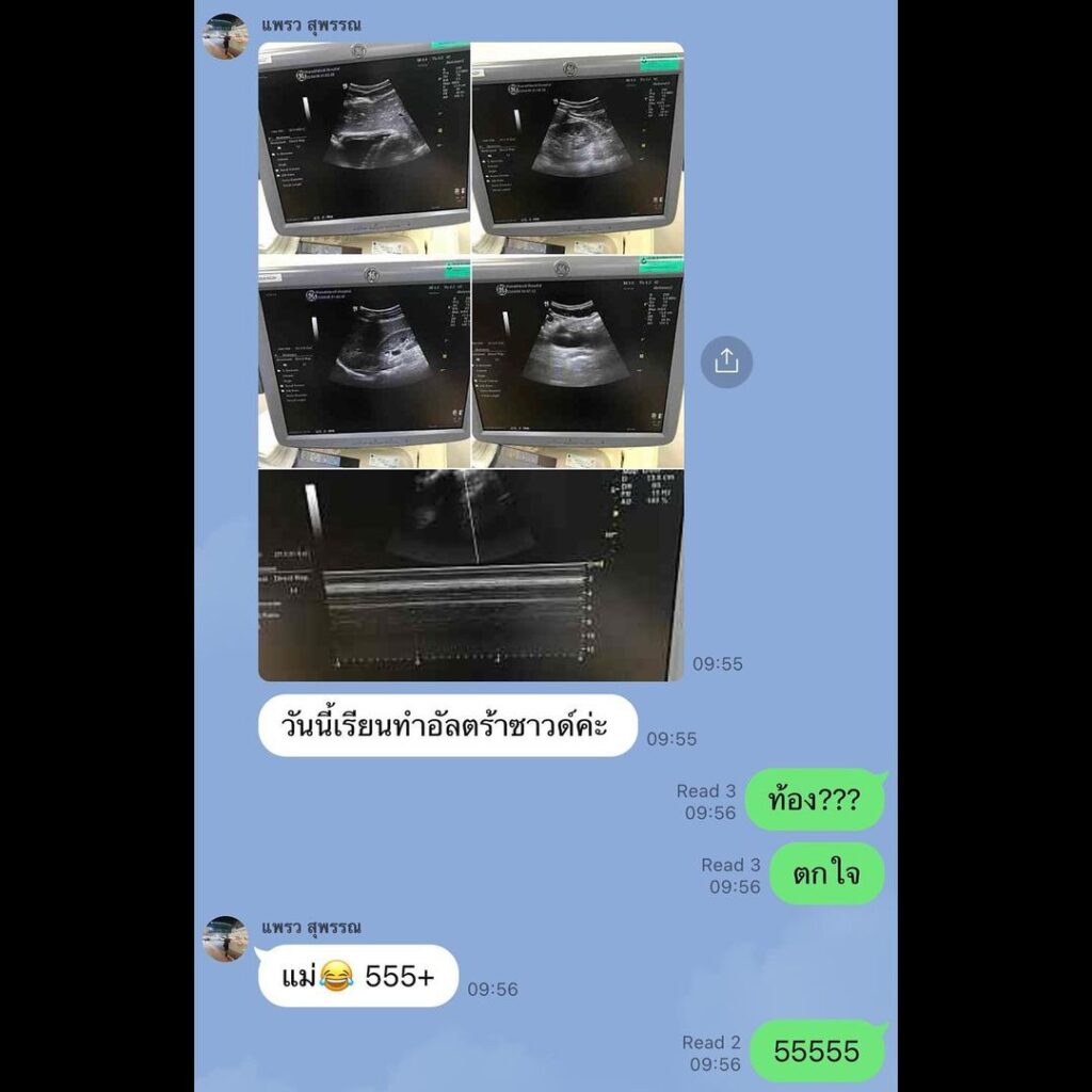 เรียกว่าทำเอาหัวอกคนเป็นแม่ตกอกตกใจไม่น้อย เมื่อลูกสาว ส่งภาพอัลตร้าซาวด์ให้กับ คุณแม่บุ๋ม ปนัดดา ให้ดูในแชทไลน์ พร้อมกับบอกว่า “วันนี้เรียนทำอัลตร้าซาวด์ค่ะ ” ซึ่งแม่บุ๋มรีบตอบกลับไปด้วยการตั้งคำถามว่า “ท้อง??..ตกใจ” ก่อนจะหัวเราะทั้งคู่