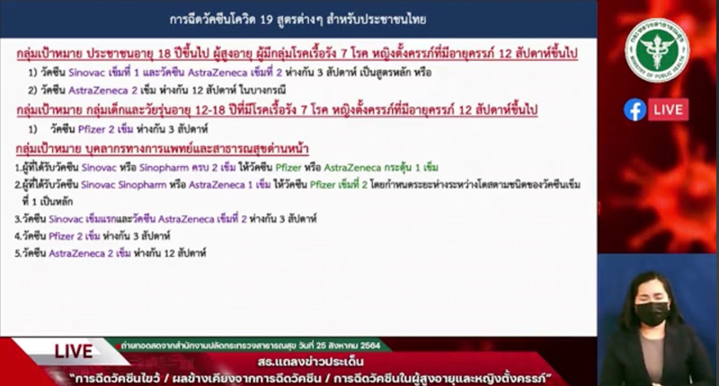 1.ผู้ที่ได้รับวัคซีน Sinovac หรือ Sinopharm ครบ 2 เข็ม ให้ฉีดวัคซีน Pfizer หรือ AstraZeneca กระตุ้น 1 เข็ม