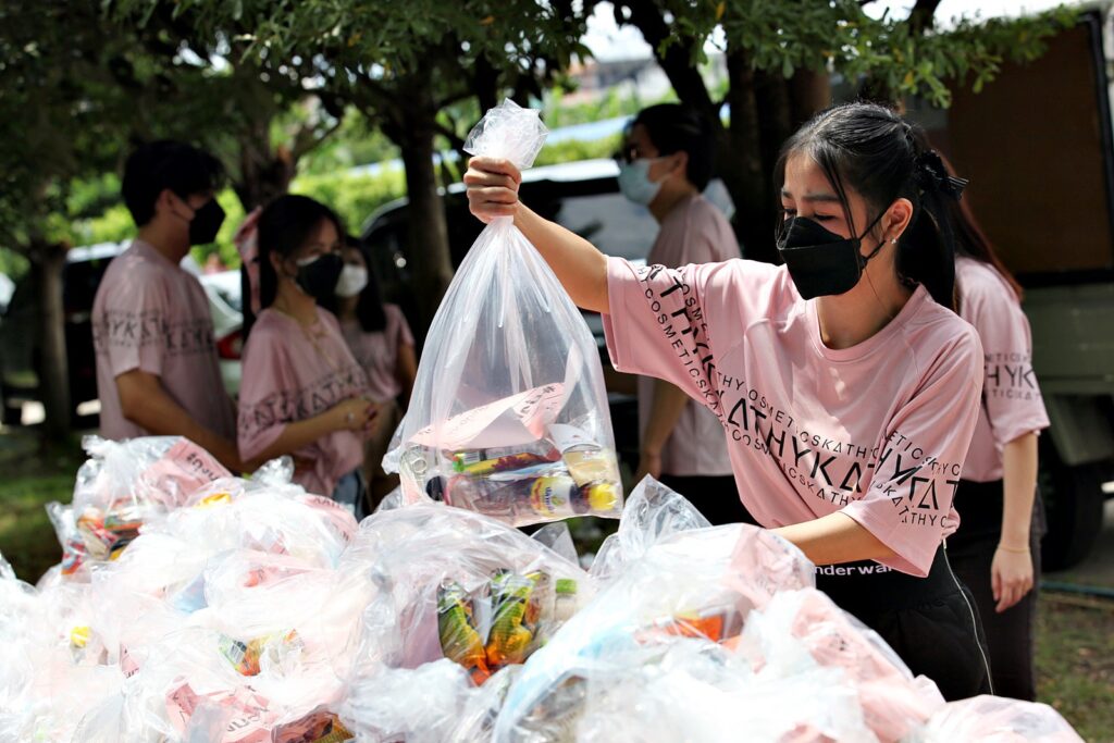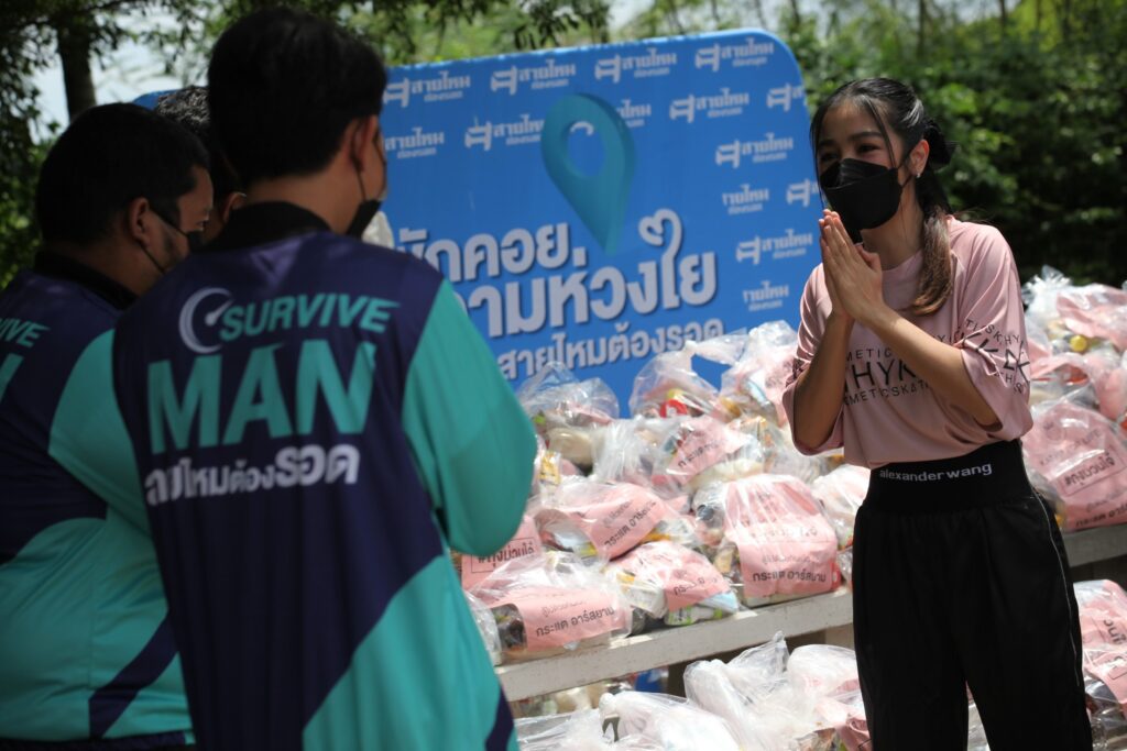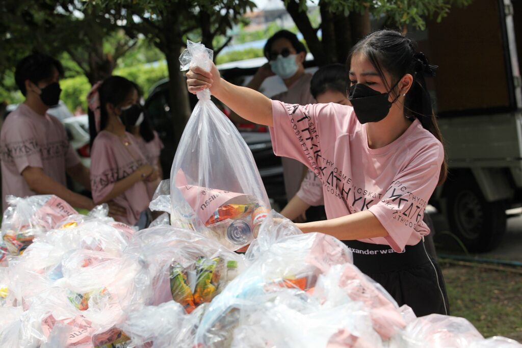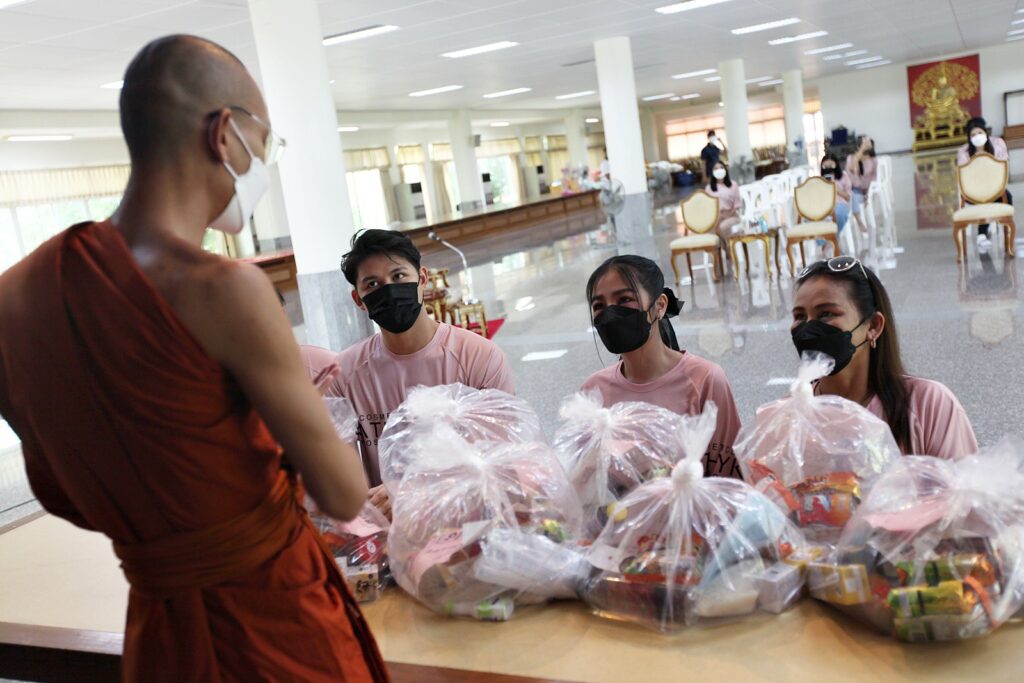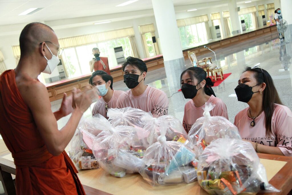 โดยวันนี้ ได้นำ “ถุงม่วนใจ๋” ไปมอบให้กับ โครงการ “พระไม่ทิ้งโยม” ณ วัดศิริพงษ์ธรรมนิมิต วัชรพล ซึ่งจัดตั้งเป็นศูนย์พักคอยผู้ป่วยโควิด-19 สำหรับดูแลผู้ป่วยกลุ่มสีเขียวที่ไม่มีอาการ และ “ศูนย์รับบริจาคกลุ่มสายไหมต้องรอด” เพื่อแจกจ่ายให้กับผู้ที่ต้องการต่อไป