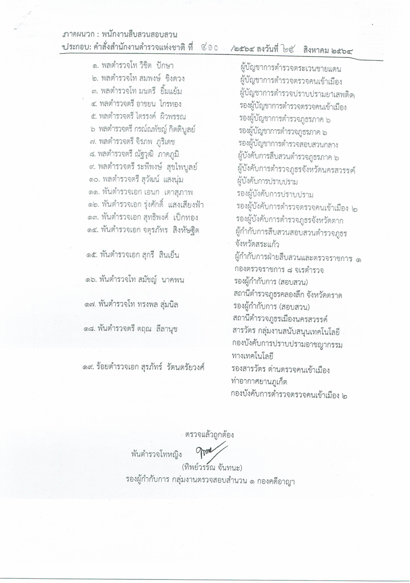 ทั้งนี้ เนื่องจากเป็นกรณีข้าราชการตำรวจกระทำความผิดอาญา มีพฤติการณ์อันเป็นความผิดร้ายแรง เป็นคดีสะเทือนขวัญสร้างความเสื่อมเสียต่อภาพลักษณ์ของสำนักงานตำรวจแห่งชาติ ทั้งยังเป็นคดีที่ได้รับความสนใจจากประชาชนและสื่อมวลชนเป็นอย่างมากเพื่อให้การสืบสวนสอบสวนคดีดังกล่าวเป็นไปด้วยความรวดเร็ว ต่อเนื่อง มีประสิทธิภาพ และเกิดความเป็นธรรมกับบุคคลหรือกลุ่มบุคคลที่เกี่ยวข้องจึงมีคำสั่งแต่งตั้งคณะพนักงานสอบสวน ทั้งนี้ ในหนังสือคำสั่งให้อำนาจหน้าที่คณะพนักงานสืบสวนสอบสวนคดีดังกล่าวตามประมวลกฎหมายวิธีพิจารณาความอาญา รวบรวมพยานหลักฐานต่างๆ เพื่อที่จะทราบข้อเท็จจริงหรือพิสูจน์ความผิดของบุคคล กลุ่มบุคคล หรือเครือข่ายให้เสร็จสิ้นโดยเร็ว หากการสืบสวนพบว่ามีผู้อื่นร่วมกระทำความผิด หรือมีการกระทำความผิดอื่นเกี่ยวเนื่องกันก็ให้มีอำนาจสอบสวนดำเนินคดีกับผู้กระทำความผิดนั้นๆแล้วรายงานผลให้สำนักงานตำรวจแห่งชาติทราบ