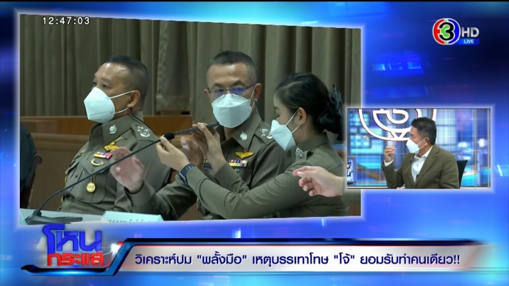 รายการโหนกระแสวันที่ 27 ส.ค. 64 “หนุ่ม กรรชัย กำเนิดพลอย” ในฐานะผู้ดำเนินรายการ ผลิตในนามบริษัท ดีคืนดีวัน จำกัด ออกอากาศทุกวันจันทร์-ศุกร์ เวลา 12.35 น. ทางช่อง 3 กดเลข 33 ยังเกาะติดเหตุการณ์แถลงข่าว หลังการจับกุมตัว “พ.ต.อ.ธิติสรรค์ อุทธนผล” หรือ “อดีตผู้กำกับโจ้” หลังตกเป็นผู้ต้องหาคดีร่วมกับพวกก่อเหตุใช้ถุงคลุมหัวผู้ต้องหาจนเสียชีวิต โดยสัมภาษณ์ พล.ต.ต.วิชัย สังข์ประไพ อดีตรองผู้บัญชาการตำรวจนครบาล มาพร้อม ทนายเดชา กิตติวิทยานันท์ ทนายคลายทุกข์ เพื่อวิเคราะห์คำให้การที่ระบุว่าเป็นการพลั้งมือ และขอยอมรับผิดว่าทำคนเดียว
