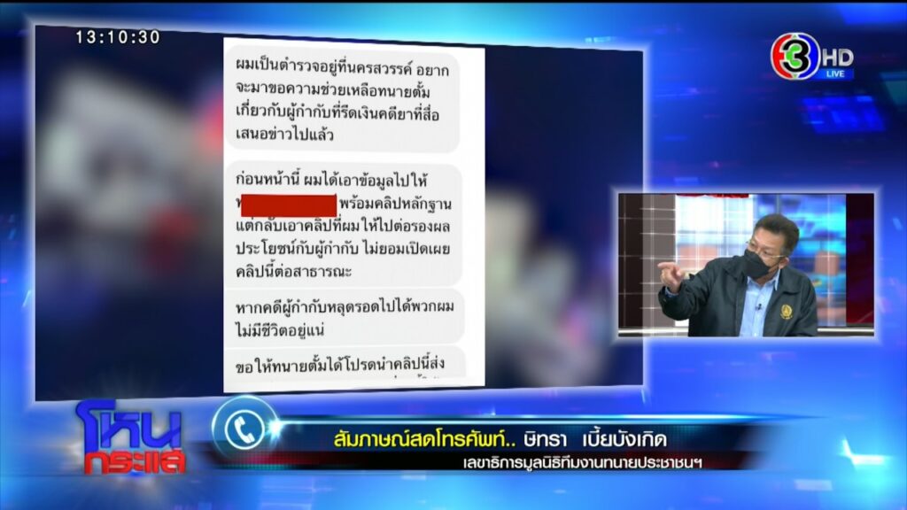 เดชา : เมื่อวานตอนเขาให้สัมภาษณ์ ผมก็นั่งดูและไลฟ์สดเลย มีผู้สื่อข่าวถามว่าทนายเรียกเงินตบทรัพย์หรือเปล่า เขาบอกว่าไม่มี ผกก.โจ้เขาพูดชัดเจน