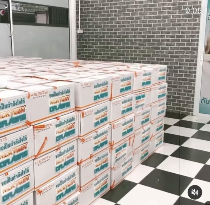 “กล่องยังชีพ nickygoy x @dr.awie_official ให้ fc ขาหื่น 500 กล่อง ส่งถึงบ้านทุกคนนะครับ รอรับนะครับ ทุกคน ผมกับน้องยกเองทุกกล่องนะ อิอิ”