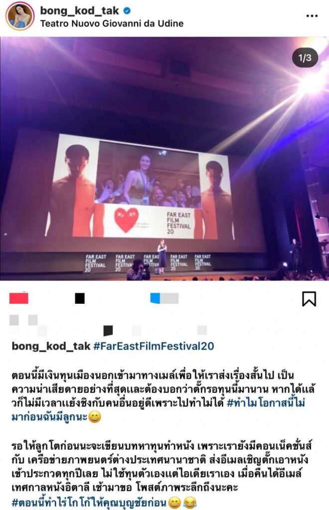 ล่าสุด ตั๊ก บงกช ได้ออกมาโพสต์อินสตราแกรมส่วนตัวพร้อมโอดครวญเบาๆจากกรณีที่มีเงินทุนจากเมืองนอกส่งมาให้ทำหนังสั้น แต่เสียดายตรงที่ไม่มีเวลาทำ ซึ่งเจ้าตัวชี้แจงระบุข้อความว่า