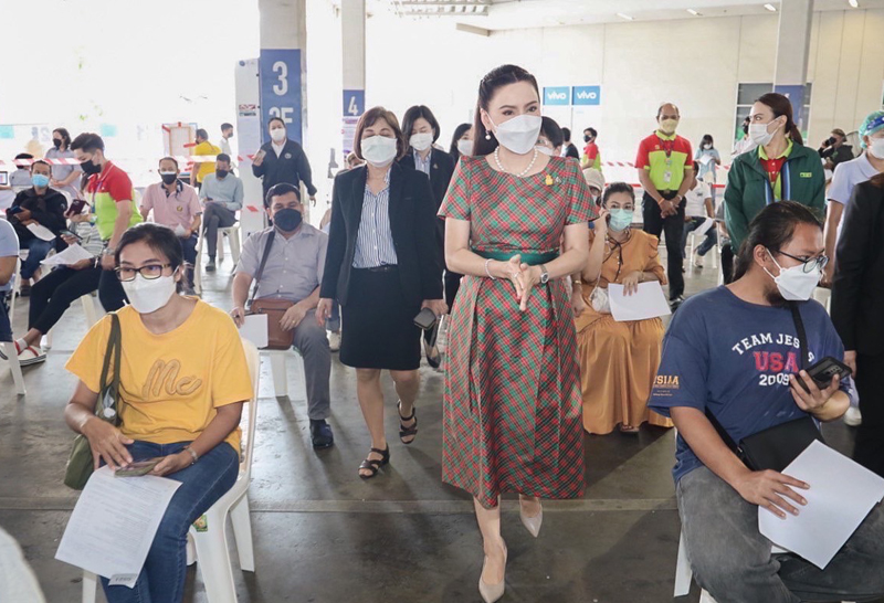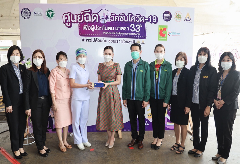 นายสุชาติ ชมกลิ่น รัฐมนตรีว่าการกระทรวงแรงงาน มอบหมายให้ นางธิวัลรัตน์ อังกินันทน์ ที่ปรึกษารัฐมนตรีว่าการกระทรวงแรงงาน ลงพื้นที่มอบใบประกาศขอบคุณภาคเอกชนที่ร่วมให้การสนับสนุนสถานที่และโรงพยาบาลในเครือข่ายประกันสังคมที่สนับสนุนบุคลากรทางการแพทย์ในการฉีดวัคซีนโควิด-19ให้แก่ผู้ประกันตน มาตรา 33 ณ บริษัท 27 วิศวกรรม จำกัด เขตบางขุนเทียน และ ลานจอดรถบิ๊กซีดาวคะนอง เขตธนบุรี กรุงเทพมหานคร