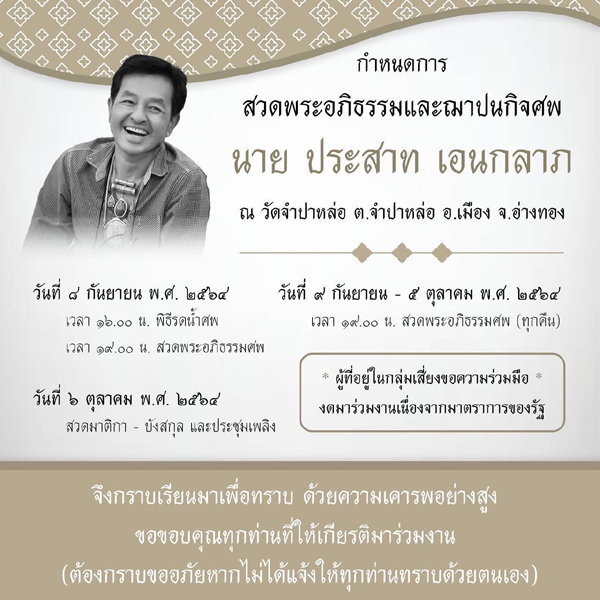 สำหรับกำหนดสวดพระอภิธรรม คุณพ่อมนต์รัก ณ วัดจำปาหล่อ จ.อ่างทอง