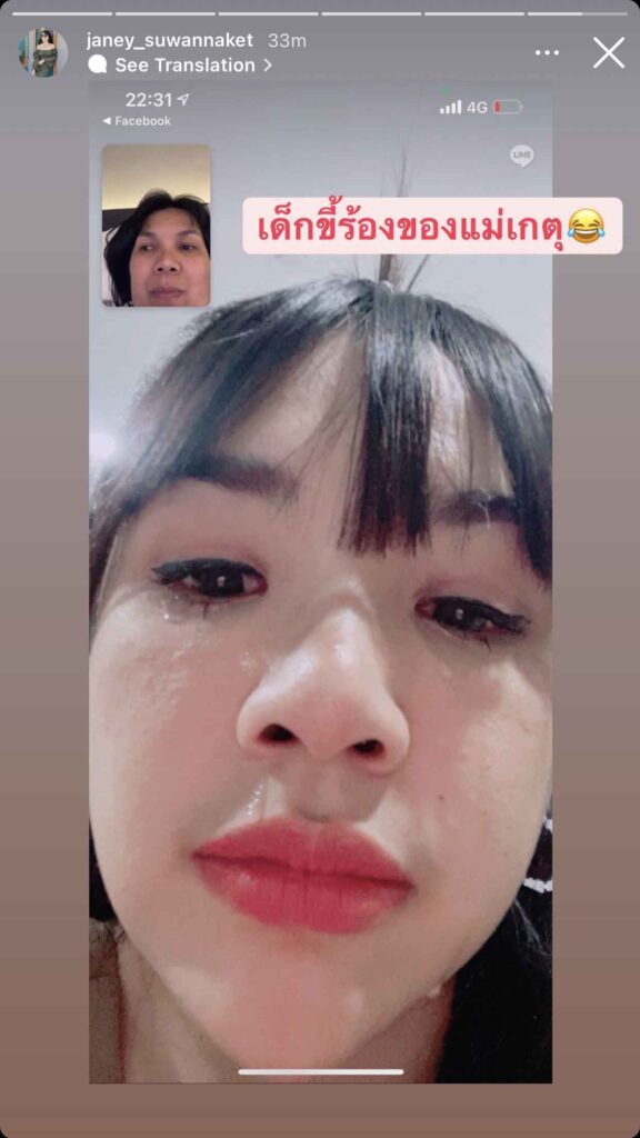 นอกจากนี้เจ้าตัวยังได้โพสต์สตอรี่ต่อกันเป็นภาพที่ตนเองวีดีโอคอลไปหาคุณแม่ทั้งน้ำตาพร้อมแคปชั่นว่า “เด็กขี้ร้องของแม่เกตุ”