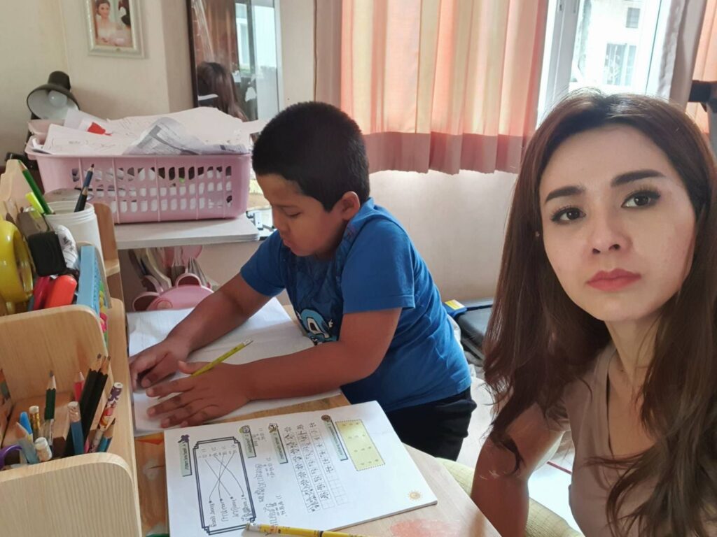 ส่วน “บี กมลาสน์ เอียดศรีชาย” ก็ร่วมส่งกำลังใจให้ผู้ปกครองทุกคนและเผยว่า “สิ่งสำคัญที่นำมาใช้รับมือการเรียนออนไลน์ของลูกทั้งสองคนของบีคือ ความเข้าใจ ลูกชายคนโต “น้องภูผา” กำลังเรียนชั้นป.1 ส่วน “น้องฟ้าใส”เรียนอยู่ชั้นอนุบาล 3 เราต้องใช้ทั้งไม้อ่อนและไม้แข็ง ในการดูแลลูก ๆ เวลาเรียนออนไลน์ เลือกใช้ให้ถูกตามสถานการณ์ ต้องอดทนในการแก้ปัญหาต่าง ๆ คอยสังเกตปฏิกิริยาของลูกเวลาเรียน รวมถึงใช้หลักจิตวิทยามาร่วมแก้ปัญหาด้วย บางเวลาบีก็สวมบทบาทครูจริง ๆ เคร่งครัดและเข้มงวดกับเด็ก ๆ ไม่ใจอ่อนเวลาลูก ๆ เริ่มเกเร แต่จะไม่ดุด่าว่ากล่าวหรือใช้อารมณ์ พยายามอธิบายให้ลูกเข้าใจ ว่าต้องตั้งใจเวลาเรียน เมื่อลูกทำได้ก็ให้รางวัล เช่น ดูแลให้ลูก ๆ ทำการบ้านให้เสร็จในช่วงเช้า และอนุญาตให้เล่นซนได้ตามประสาในช่วงบ่าย เมื่อถึงเวลาที่เหมาะสมก็เรียกให้มานั่งเรียนต่อ ฝึกให้เด็ก ๆ เป็นคนรักษาเวลาไปในตัว ซึ่งจะได้ผลดีกว่านั่งฝืนเรียนไปแบบไม่หยุดพัก เพราะธรรมชาติของเด็กแต่ละช่วงอายุ มีความอดทนต่อการเรียนไม่เท่ากัน ยิ่งเวลาที่ลูกต้องเรียนวิชาที่ไม่ชอบ แม่อย่างเราก็ต้องคอยให้กำลังใจ คอยชื่นชมเวลาเขาตั้งใจเรียน ให้รู้สึกว่าแม่อยู่ข้าง ๆ ลูกเสมอ บางวันต้องพูดซ้ำคำเดิม ๆ ตลอดจนเจ็บคอ มีการหลอกล่อด้วยขนมหรือสิ่งที่เขาชอบบ้าง โดยรวมแม้ว่าคนเป็นแม่จะเหนื่อยมากขึ้น แต่ก็ทำให้เราได้ใกล้ชิดลูกมากขึ้นด้วยเช่นกัน บีขอเป็นกำลังใจให้แม่ ๆ ทุกท่าน ผ่านจุดนี้ไปได้ด้วยกัน ทำเพื่อลูกของเรากันนะคะ”