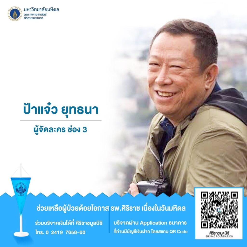 ทั้งนี้เหล่าดาราช่อง 3 จึงขอเชิญชวนทุกคนร่วมใจกันบริจาคช่วยเหลือผู้ป่วยด้อยโอกาส รพ.ศิริราช เพราะทุกบาทของท่านสามารถต่อชีวิตให้พวกเขาได้