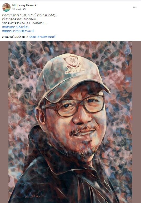 “เวลาประมาณ 16.00 น. วันนี้ (15 ก.ย.2564) เพื่อนโค้กจากไปอย่างสงบ ขนาดทำใจไว้บ้างแล้ว.. ยังใจหาย…#หลับสบายเถิดเพื่อน#สมชายเปรมประภาพงษ์” ”