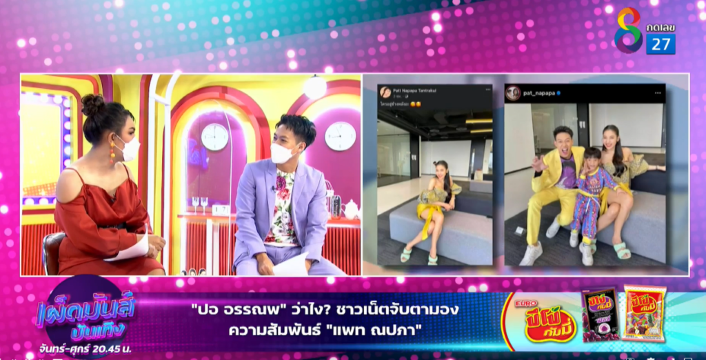 ติดตามชม รายการ “เผ็ดมันส์บันเทิง” โฉมใหม่ เผ็ดทุกองศา เผ็ดทุกเวลา #ไม่ต้องรอเม้นท์คราวหน้า…เพราะเราจะเม้าท์คราวนี้!!! กันได้ทุกวันจันทร์–ศุกร์ เวลา 20.45 น. ทางช่อง 8 กดเลข 27 ค่ะ หรือติดตามผ่านทาง เพจเฟซบุ๊ค ไอจี ทวิตเตอร์ ยูทูป ช่อง 8