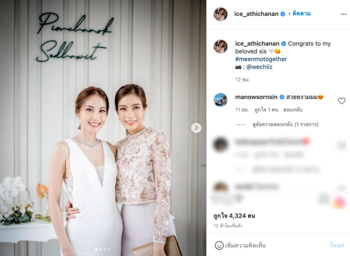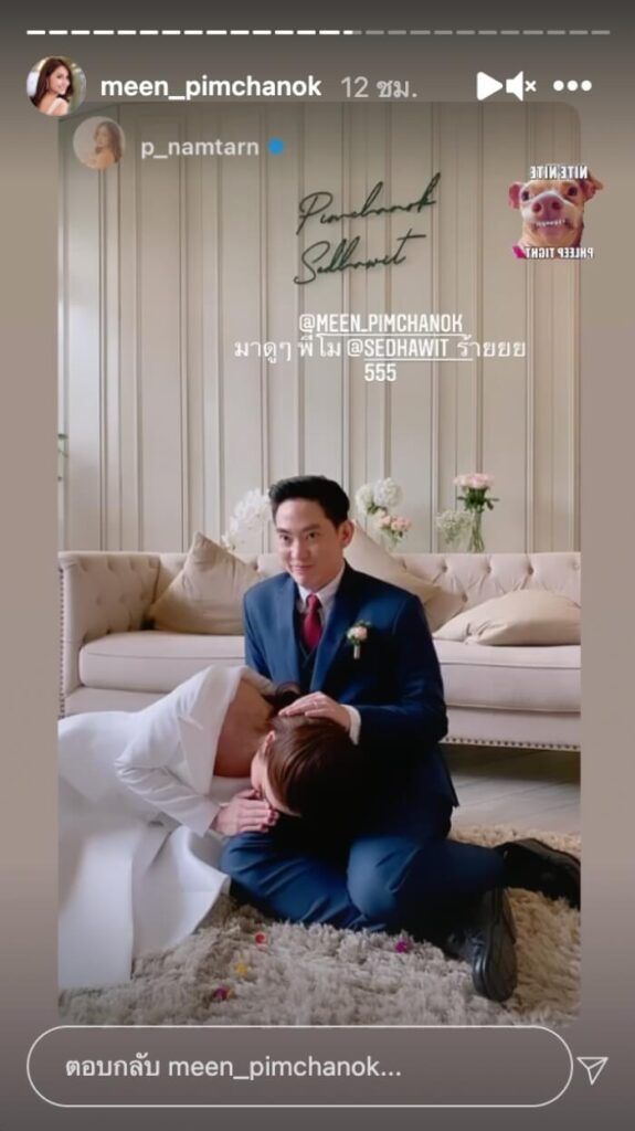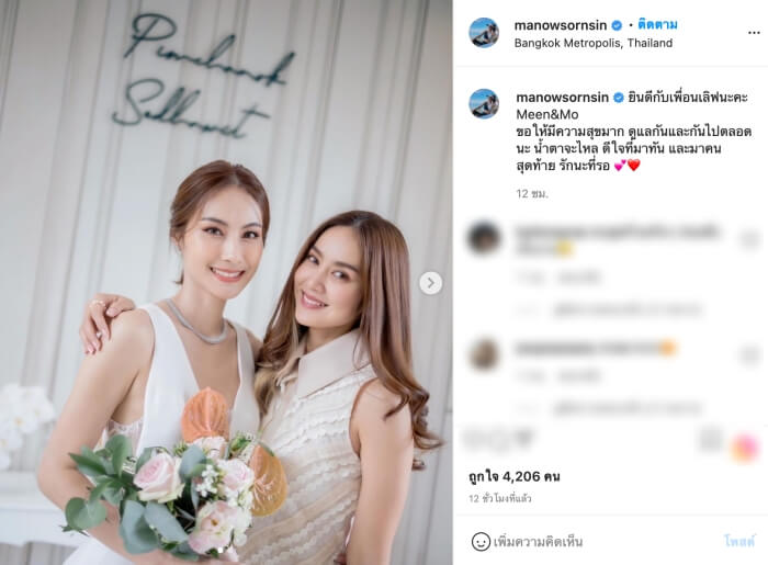 ส่วนทางด้านนางเอกสาว “มะนาว ศรศิลป์” ที่ได้ลงภาพในอินสตาแกรมส่วนตัว หลังไปร่วมงานแต่งงานเพื่อนรักก้ได้เขียนข้อความสุดตื้นตันใจถึงสาวมีนว่า “ยินดีกับเพื่อนเลิฟนะคะ Meen&Mo ขอให้มีความสุขมาก ดูแลกันและกันไปตลอดนะ น้ำตาจะไหล ดีใจที่มาทัน และมาคนสุดท้าย รักนะที่รอ”