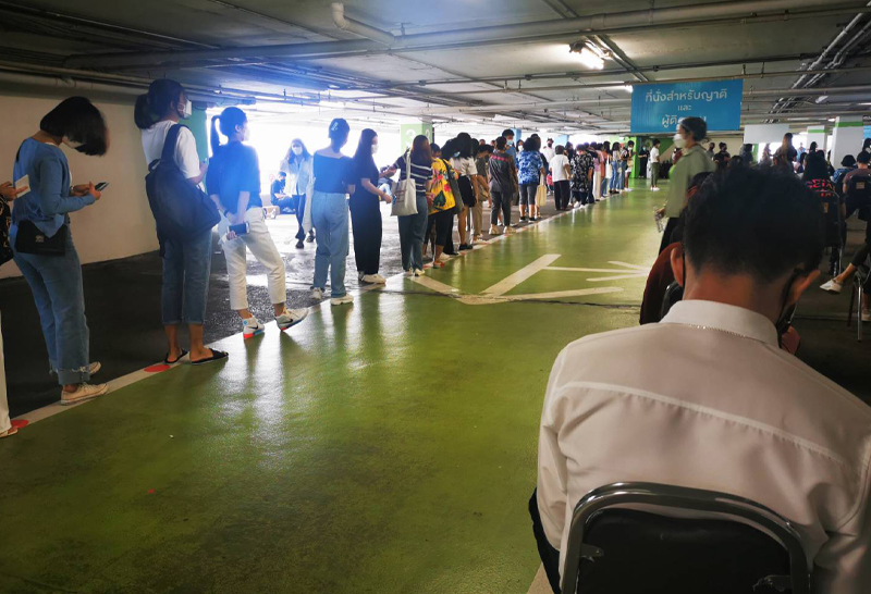 บรรยากาศที่ศูนย์ฉีดวัคซีนห้างสรรพสินค้าเซ็นทรัลลาดพร้าว สำหรับคนที่ฉีดเข็มที่ 2จากเดิมที่นัดวันที่ 24-25 กันยายน ได้เลื่อนฉีดเร็วขึ้นมาเป็นวันนี้ ได้เดินทางมาฉีดตามหมายนัดตั้งแต่ช่วงเช้าก่อนเปิดให้บริการโดยประชาชนที่ได้คิวฉีดวันนี้มีมากกว่า 4,700 คน แต่ทางห้างสรรพสินได้จัดสถานที่และเจ้าหน้าที่คอยประจำการตามจุดต่างๆในการอำนวยความสะดวกให้ประชาชนที่เข้ารับบริการเพื่อความเป็นระเบียบเรียบร้อย โดยเฉพาะการเว้นระยะห่างลดความแออัด ซึ่งไม่พบว่าทางห้างมีระบบบริการจัดการดีขึ้นไม่พบปัญหาเรื่องความแออัดเหมือนในช่วงที่ผ่านมา