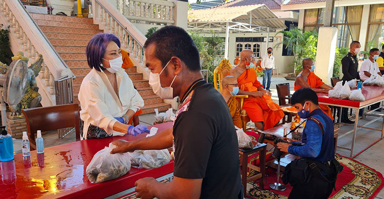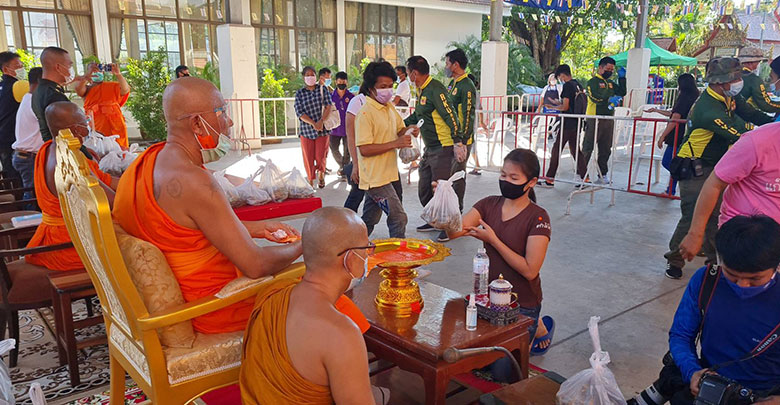 ที่โดมหลวงพ่อปู่ดอนใหญ่ วัดดอนใหญ่ คลองแปด ตำบลลำลูกกา อำเภอลำลูกกา จังหวัดปทุมธานี นายบิณฑ์ บรรลือฤทธิ์ และ นายเอกพันธ์ บรรลือฤทธิ์ พร้อมด้วยอาสามูลนิธิร่วมกตัญญู กว่า 100 คน ลงพื้นที่ แจกกุ้งให้กับประชาชนในพื้นที่ ครอบครัวละ 1 กิโลกรัม รวม 1,500 กิโลกรัม โดยมี พระครูปทุมศีลาภรณ์ (สมทรง กนฺตสีโล ,ดร.) เจ้าอาวาสวัดดอนใหญ่ เป็นประธานฝ่ายสงฆ์ และมี นางแพรวพิสัย พจนประพันธ์ ผู้บริจาคที่ดินสร้างวัดดอนใหญ่ ร่วมกับ นายบิณฑ์ บรรลือฤทธิ์ และ นายเอกพันธ์ บรรลือฤทธิ์ เป็นประธานฝ่ายฆราวาส สำหรับกุ้งทั้งหมดที่นำมาแจกในวันนี้ เป็นกุ้งที่ นายบิณฑ์ บรรลือฤทธิ์ และ นายเอกพันธ์ บรรลือฤทธิ์ ได้ไปช่วยเหมาซื้อมาจากเกษตรกร จ.สมุทรปราการ เพื่อช่วยบรรเทาความเดือดร้อน และไม่ต้องทนแบกรับภาระขาดทุนจากสถานการณ์ โควิด-19 ท่ามกลางมาตรการในการคัดกรองโควิด-19 ที่เข้มข้น ไม่ว่าจะเป็นการตั้งจุด คัดกรองก่อนเข้ารับกุ้ง 2 จุด และการสวมหน้ากากอนามัยและการเว้นระยะห่าง อย่างเคร่งครัด อีกด้วย โดยในวันนี้มีประชาชนมารับกุ้งที่แจกกว่า 1,300 คน