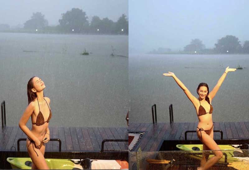 แซ่บทะลุฟ้า! “บี น้ำทิพย์” เสิร์ฟชุดบิกินี่ อวดหุ่นเซ็กซี่กลางสายฝน