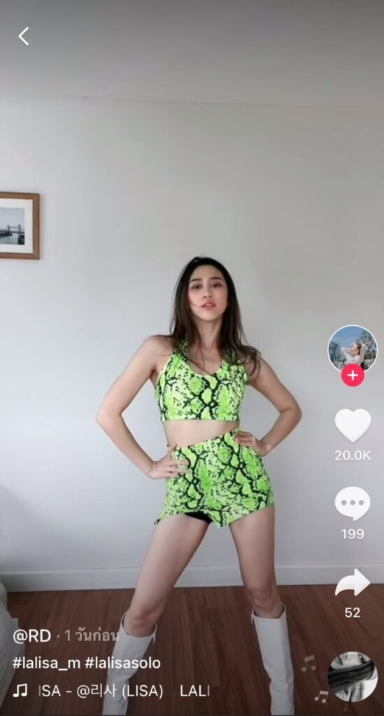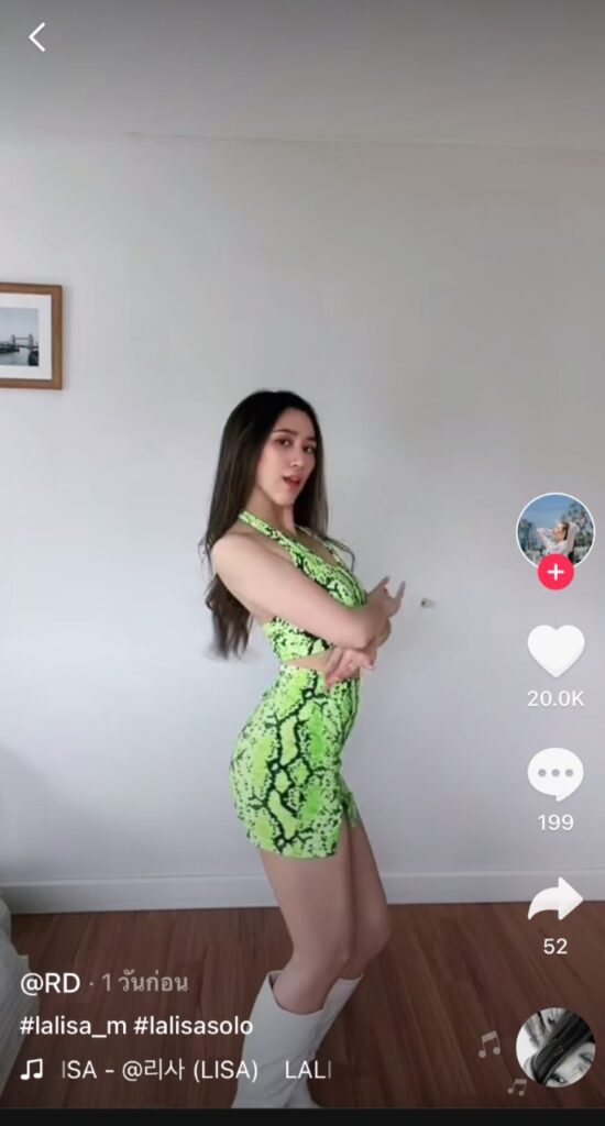 ล่าสุดหนึ่งในแฟนคลับลิซ่า นักแสดงสาวสวยสุดแซ่บฝีมือดี ช่อง7 HD พลอย รัญดภา รุ่นพี่ มิสทีน ไทยแลนด์ สกิลเต้นขั้นเทพ ดีกรีอดีตนักกีฬาลีลาศทีมชาติไทย ไม่พลาดโคฟเวอร์ท่าเต้น ซึ่ง พลอย ใช้เวลาแกะท่าโดยการดู MV อยู่หลายรอบ พร้อมกับซ้อมท่าเต้นไปพร้อมกัน รอบนี้แซ่บจัดจ้าน ที่สุดแห่งความปัง ตาค้างตะลึงกันเลยทีเดียว เพราะ พลอย ฟาด ออร่าแซ่บเสื้อสีเขียวแมกกับกระโปรงเข้ารูป มาด้านแฟนคลับต่างมาคอมเม้นต์หลัง พลอย โพสต์คลิปลงทันทีท่ามกลางความชื่นชมหลากหลายไม่ว่าจะเป็น เต้นเก่ง เต้นสวย เต้นแข็งแรง ต๊าชมาก ฯลฯ รวมทั้งมีแฟนๆ ส่งคอมเมนต์ชื่นชมฝีมือด้านการแสดงของ พลอย อีกด้วย