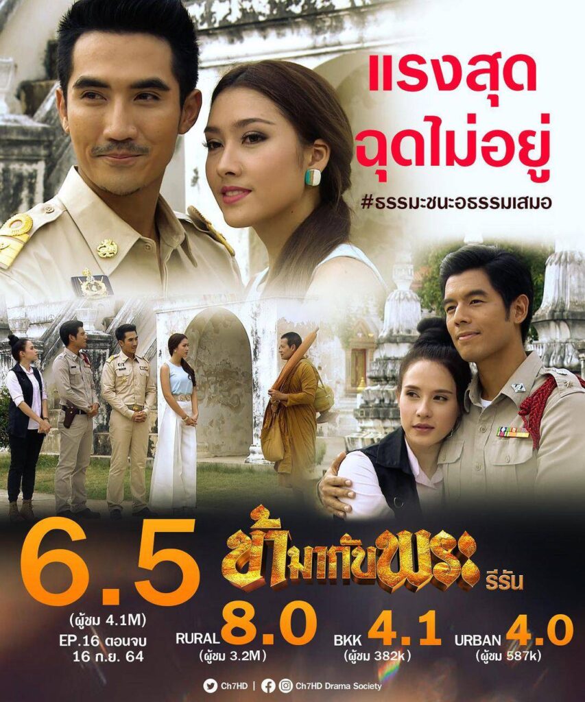ด้านละคร ข้ามากับพระ ที่กลับมารีรันอีกครั้ง ก็ปังไม่หยุด ปลุกคนดูให้ลุ้นระทึกไปกับฉากแอ็กชั่น บู๊สนั่นป่า สอดแทรกคุณธรรม จากค่ายโคลีเซี่ยม ทำให้ บิ๊กเอ็ม-กฤตฤทธิ์ บุตรพรม ผู้สวมบท ศักดิ์ ประกาศิต และ ฮาน่า ลีวิส เจ้าของบท แก้วตา กลับมายึดพื้นที่ครองหัวใจผู้ชมได้อย่างสมศักดิ์ศรี การันตีด้วยเรตติ้งสูงต่อเนื่อง จนถึงตอนจบที่ 6.5