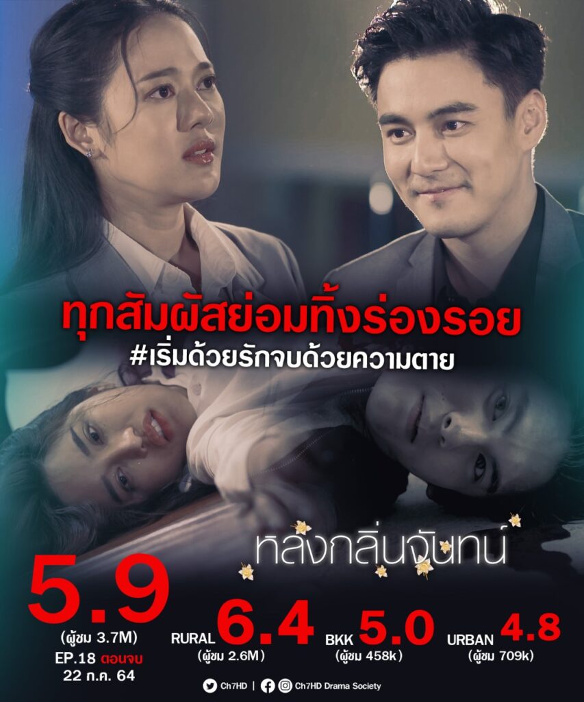 สำหรับละครแนวโรแมนติกสืบสวน หลงกลิ่นจันทน์ จากค่ายปรากฏการณ์ดี ที่ได้พระนางมากฝีมือ ธันวา สุริยจักร และ ทับทิม-อัญรินทร์ ธีราธนันพัฒน์ รับหน้าที่ถ่ายทอดเรื่องราวการสืบสวนคดีฆาตกรรมสุดระทึก สามารถสร้างปรากฏการณ์กระแสชื่นชมในโลกโซเชียลมากมาย หลายเพจดังต่างยกให้เป็นละครมิติใหม่แห่งปี ด้วยความใส่ใจในรายละเอียดและเนื้อหาที่ชวนติดตาม โดยทำเรตติ้งตอนจบไปได้ที่ 5.9