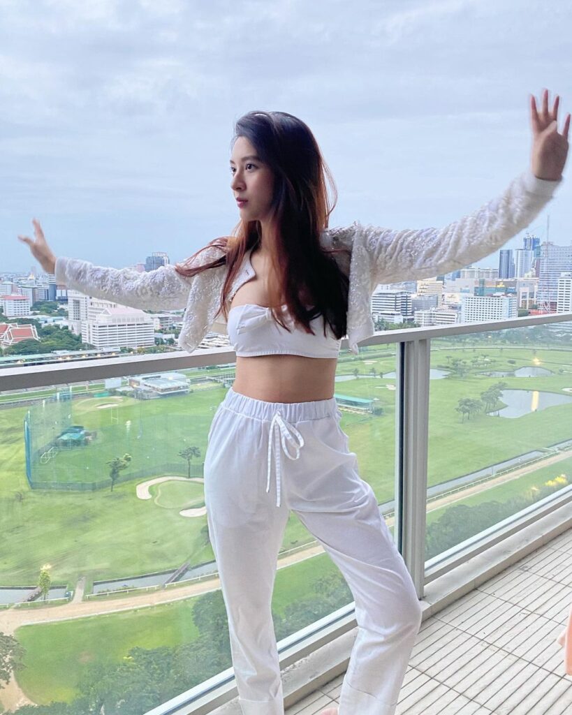 โดย สาวมิว ได้ออกมาโพสต์อินสตาแกรมส่วนตัวอวดภาพแซ่บ ๆ ของตัวเองในชุดสบายๆแต่อวดให้เห็นหน้าท้องแบบราบ หลังเพิ่งผ่านการคลอดลูกมา พร้อมเขียนข้อความว่า “หนีลูกหลับขึ้นมาถ่ายรูปเเพร้บบบ ซ้อมรำเเข่งกับมาริน @marin_kuha @saint_kuha”