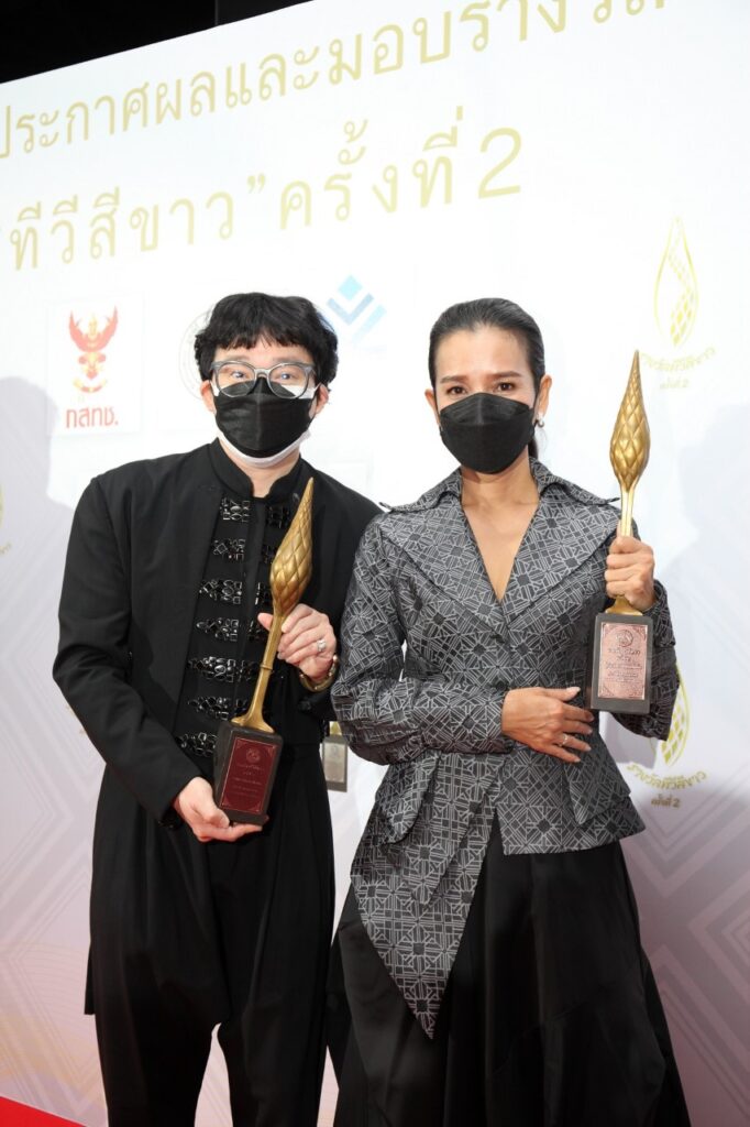 ผู้ขึ้นรับรางวัล คุณปิยะ เศวตพิกุล และ ชุดาภา จันทเขตต์ ผู้จัดละคร