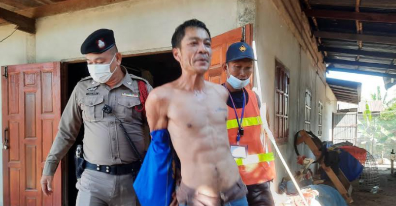 จากสอบสวนเบื้องต้น ทราบว่านายอุดร ซึ่งมีประวัติเกี่ยวข้องกับยาเสพติด มีอาการหลอน และก่อนหน้านี้มีนิสัยมักหึงหวงภรรยา และทะเลาะกันจนถึงลงไม่ลงมือกันบ่อยครั้ง ก่อนเกิดเหตุเมื่อคืนที่ผ่านมา นายอุดร ภรรยา และนายทองสุขได้ดื่มสุราด้วยกันที่บ้าน ก่อนจะแยกย้าย กระทั่งช่วงเช้าได้บีบคอภรรยาแล้วจับศีรษะโขกกับเตียงนอนที่บ้านพัก ก่อนไปได้นั่งดื่มสุราอยู่หน้าบ้านเลขที่ 122 ซึ่งเป็นบ้านของแม่ตนเอง จากนั้นนายทองสุข ขี่รถจักรยานยนต์ผ่านมา และได้มานั่งดื่มด้วย กระทั่งมีปากเสียงกัน คาดว่านายอุดร จะหวาดระแวงว่านายทองสุขมีความสัมพันธ์กับภรรยา จึงฆ่าภรรยาตาย และไปนั่งดื่มเหล้ารอโอกาสแทงเพื่อนสาหัสดังกล่าว ทั้งนี้ จากการสอบถามนายณัฐนัย สอนหนูน้อย อายุ 20 ปี ลูกชายผู้เสียชีวิต ทราบว่า ก่อนเกิดเหตุนายอุดร สอนหนูน้อย อายุ 52 ปี ซึ่งเป็นพ่อของตนได้ทำร้ายร่างกายนายทองสุขที่บ้านเลขที่ 122 ซึ่งเป็นบ้านของยายตน โดยใช้กรรไกรแทงจนได้รับบาดเจ็บสาหัส และมีเจ้าหน้าที่ตำรวจมาจับกุมตัว และนำตัวผู้บาดเจ็บส่งโรงพยาบาล จากนั้นตนได้มาที่บ้านพัก เพราะคิดว่าแม่อาจจะถูกทำร้าย ซึ่งก็พบว่าแม่นั้นถูกทำร้ายจนเสียชีวิตจริงๆ จึงแจ้งเจ้าหน้าที่มาตรวจสอบ ทั้งนี้พ่อและแม่นั้น อยู่กินด้วยกันมาหลายปีแล้ว แต่ที่ผ่านมาพ่อมักที่จะทะเลาะกับแม่บ่อยครั้ง เนื่องจากมีความหึงหวง และทราบว่าพ่อนั้นก็เสพยาเสพติดเป็นประจำด้วย บางครั้งก็ทำร้ายตบตีแม่ กระทั่งล่าสุดแม่ได้ขอเลิกกับพ่อ พร้อมกับหย่ากันได้ประมาณ 6 เดือนแล้ว เนื่องจากทนกับความหึงหวงและการถูกทำร้ายร่างกายไม่ไหว และก่อนเกิดเหตุคาดว่าน่าจะเสพยาและหึงหวงแม่จึงก่อเหตุดังกล่าว ด้าน นางเกษร สอนหนูน้อย อายุ 69 ปี แม่นายอุดรผู้ต้องหากล่าวว่า ลูกชายนั้นเสพยาจนปัจจุบันมีอาการหลอน ซึ่งมักหึงหวงและระแวงภรรยาว่าจะไปมีคนอื่นอยู่ตลอดเวลา จนทะเลาะและตบตีกันบ่อยครั้ง ก่อนหน้านี้ก็ได้เลิกกันและหย่ากัน แต่ก็ยังกลับมาหากันเหมือนเดิม ส่วนสาเหตุคาดว่าลูกชายนั้นน่าจะเสพยา ประกอบกับดื่มเหล้าจึงมีอาการหลอนเกิดความหึงหวงจนก่อเหตุสลดใจดังกล่าว อย่างไรก็ตาม เบื้องต้นเจ้าหน้าที่ยังไม่สามารถสอบปากนายอุดรได้อย่างละเอียด เนื่องจากยังคงพูดจาไม่รู้เรื่องวกไปวนมา แต่เบื้องต้นยอมรับว่าได้ก่อเหตุจริง ซึ่งตำรวจได้แจ้งข้อหานายอุดร ฆ่าผู้อื่นโดยเจตนา ทำร้ายร่างกายผู้อื่น นำตัวส่งพนักงานสอบสวนดำเนินคดีต่อไป