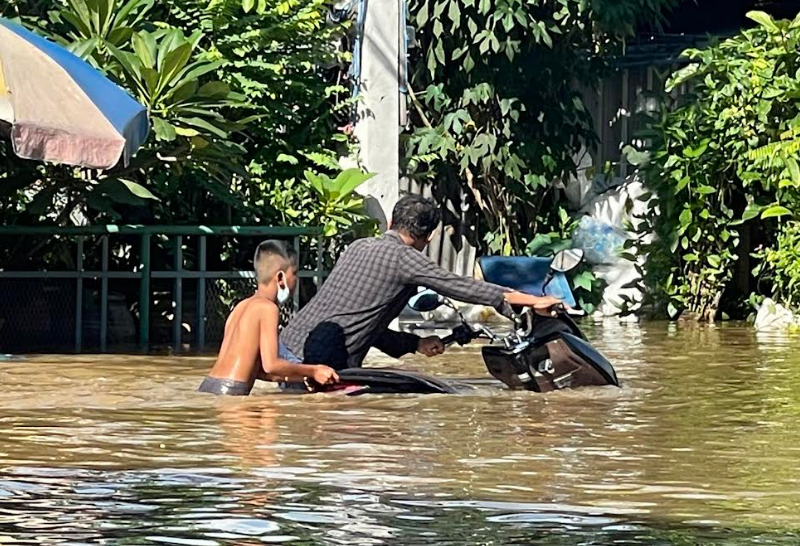 ต.ลำนารายณ์ อ.ชัยบาดาล จ.ลพบุรียังวิกฤต กู้ภัยชลบุรีลุยช่วยผู้ป่วย อพยพคน หลังน้ำยังท่วมสูง