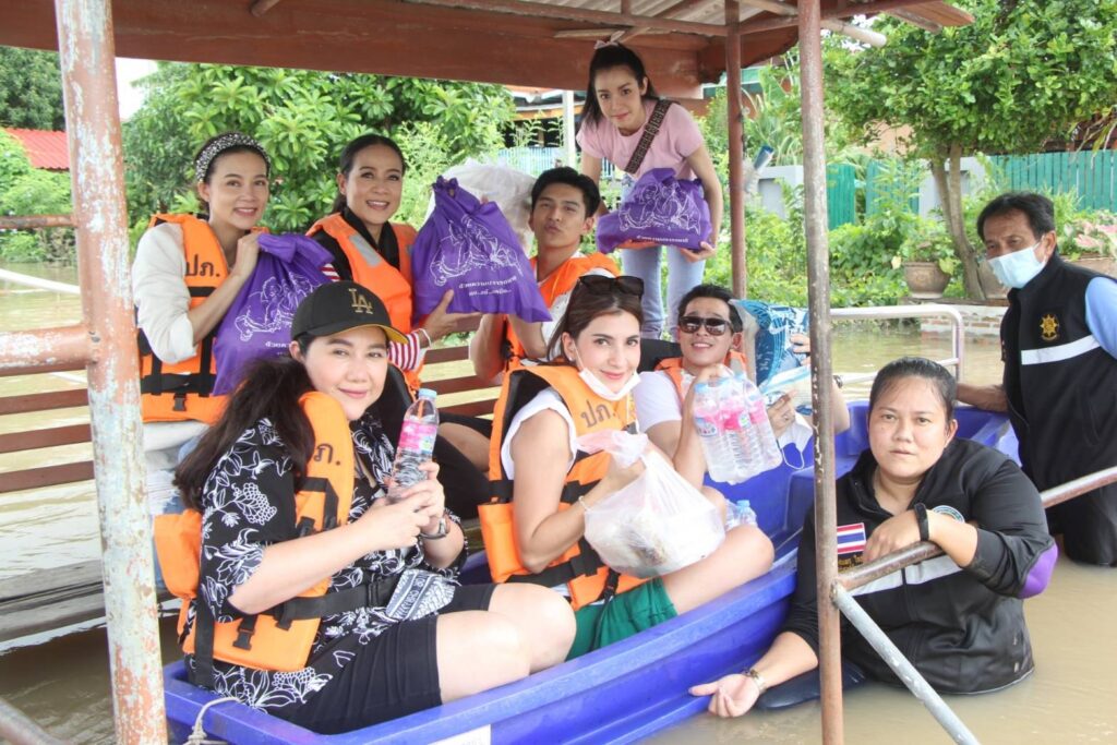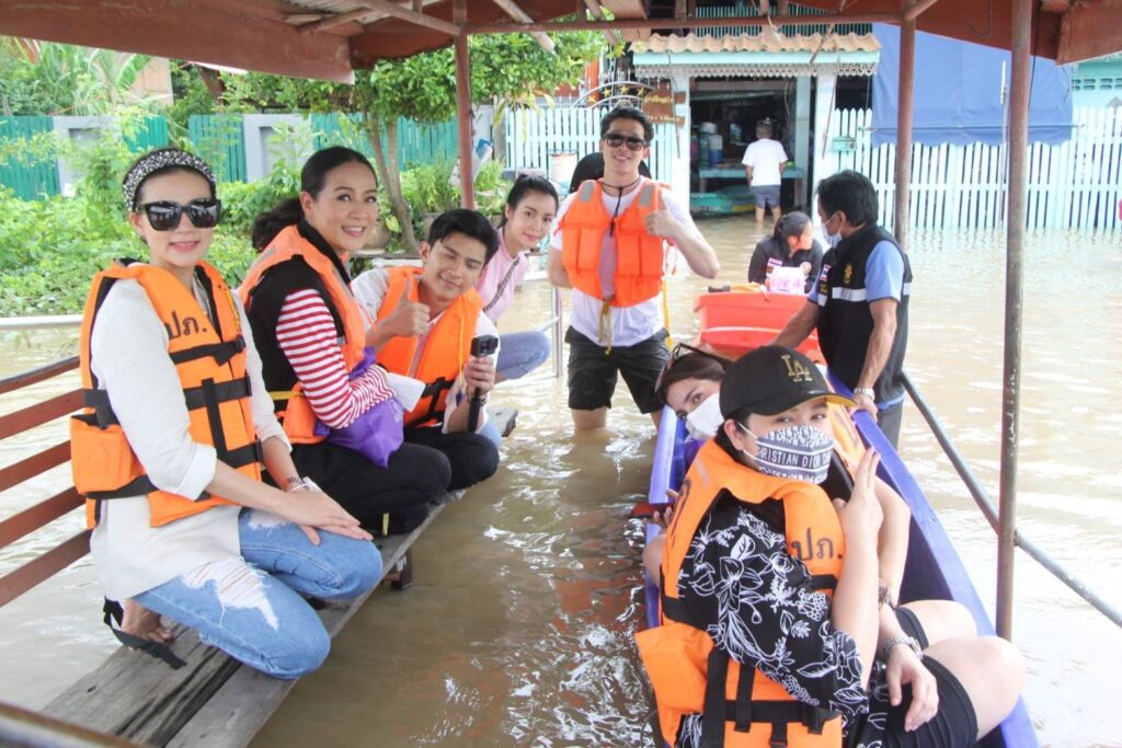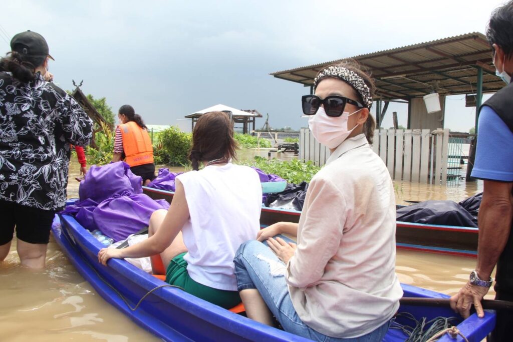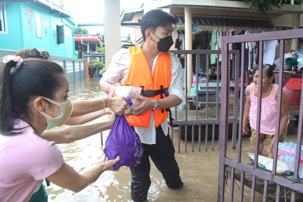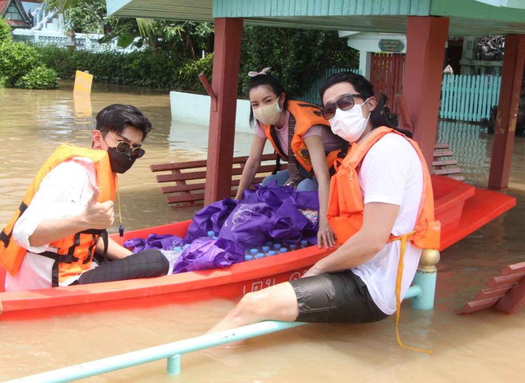 กบ ปภัสรา-โหน ธนากร – นุ๊ก สุทธิดา ลุยน้ำท่วมมอบถุงยังชีพชาวปทุมธานี