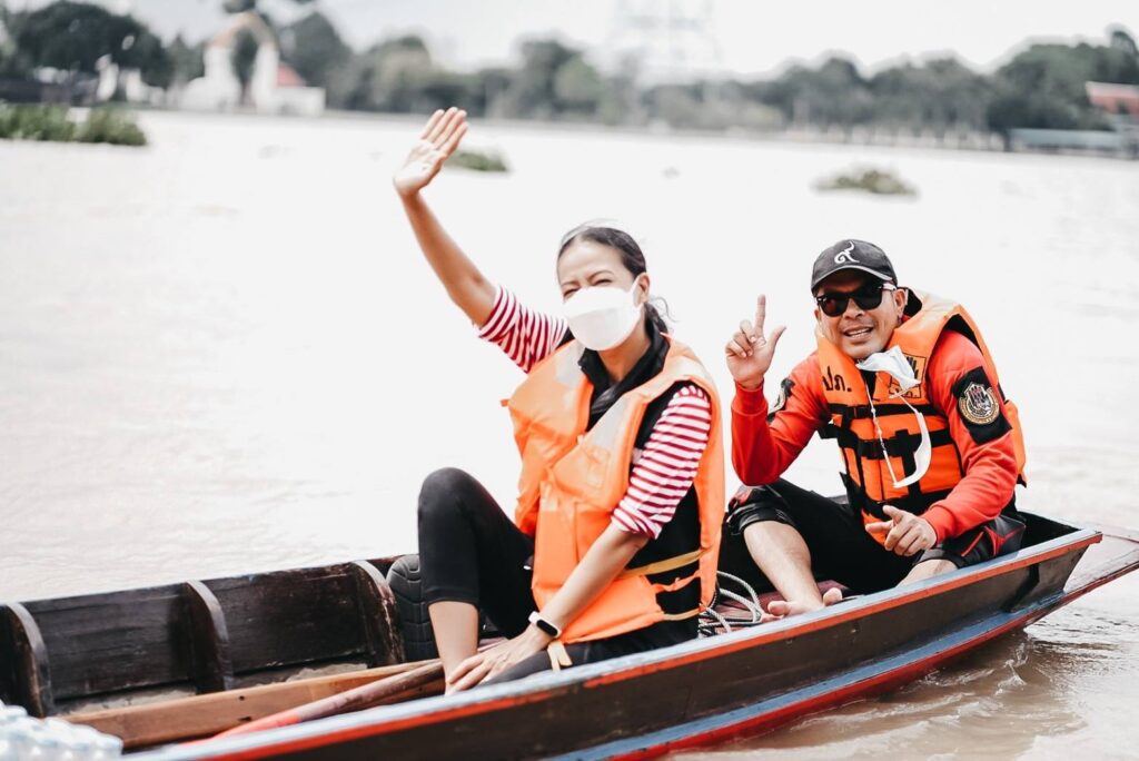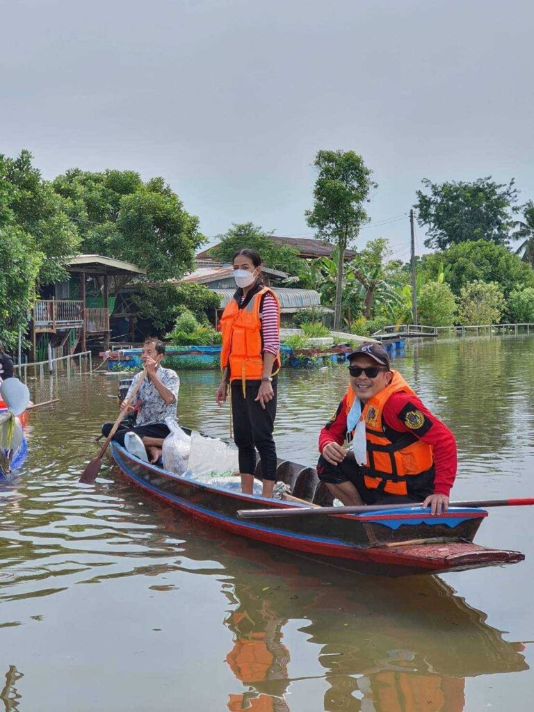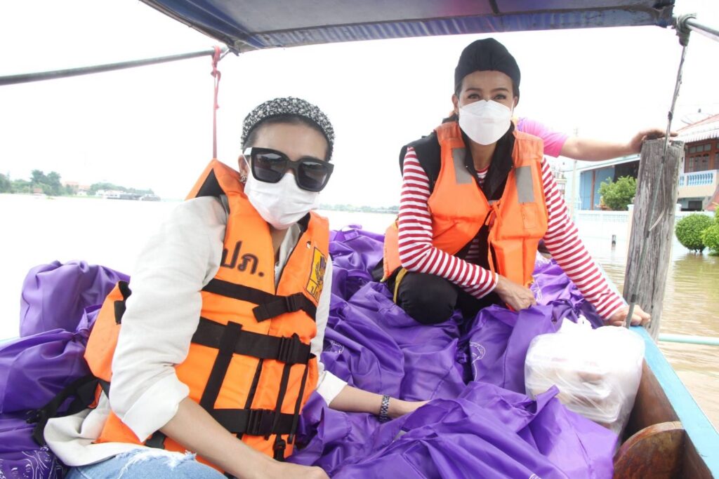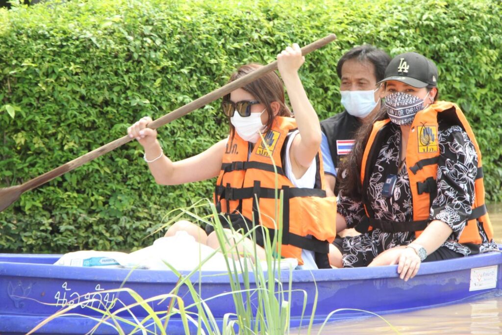 กบ ปภัสรา-โหน ธนากร – นุ๊ก สุทธิดา ลุยน้ำท่วมมอบถุงยังชีพชาวปทุมธานี