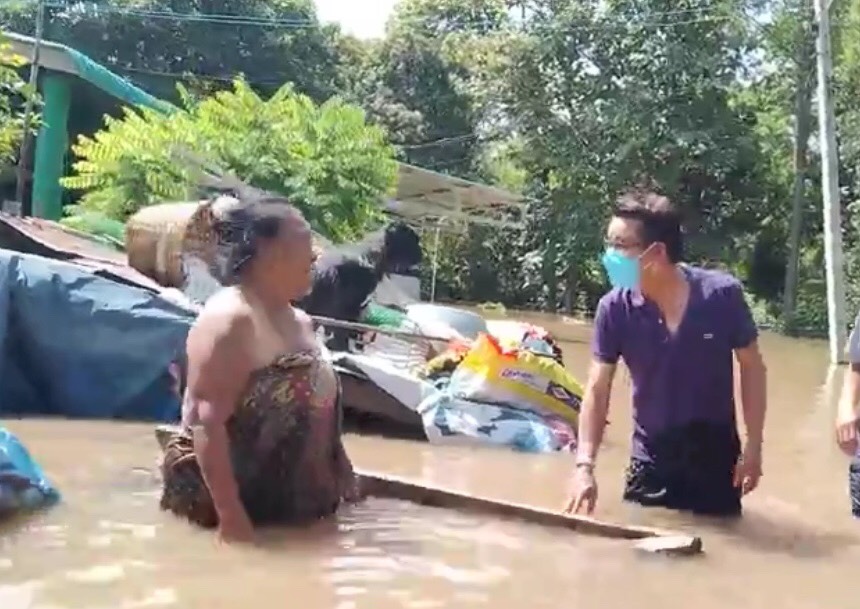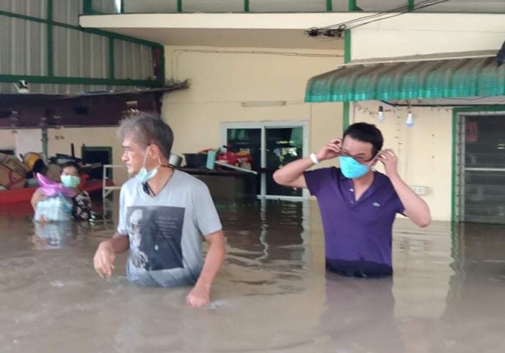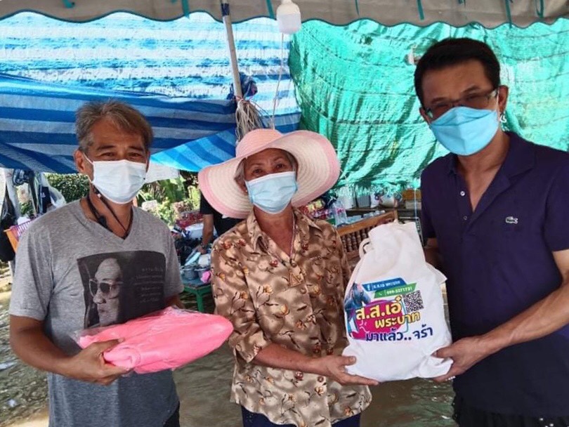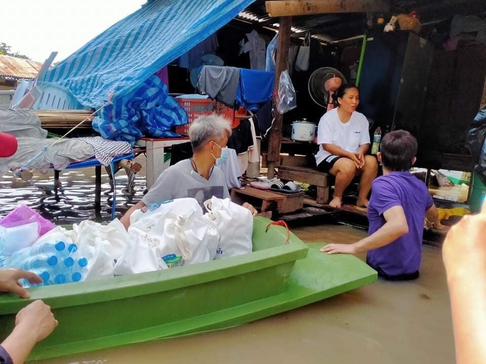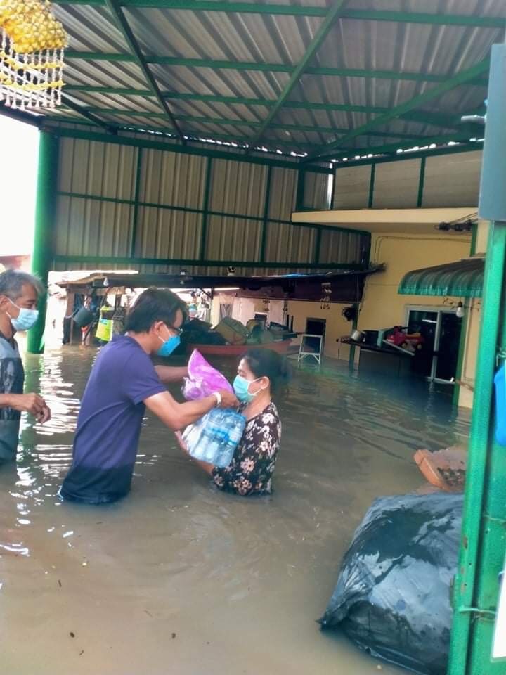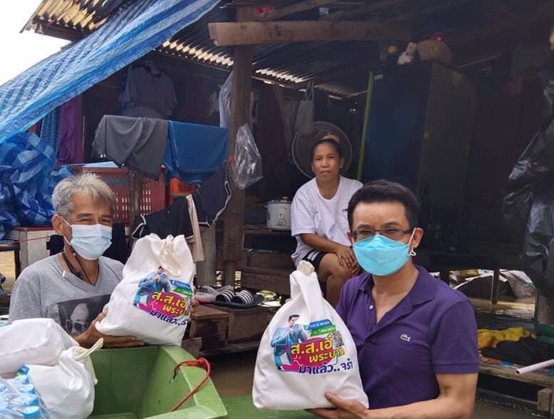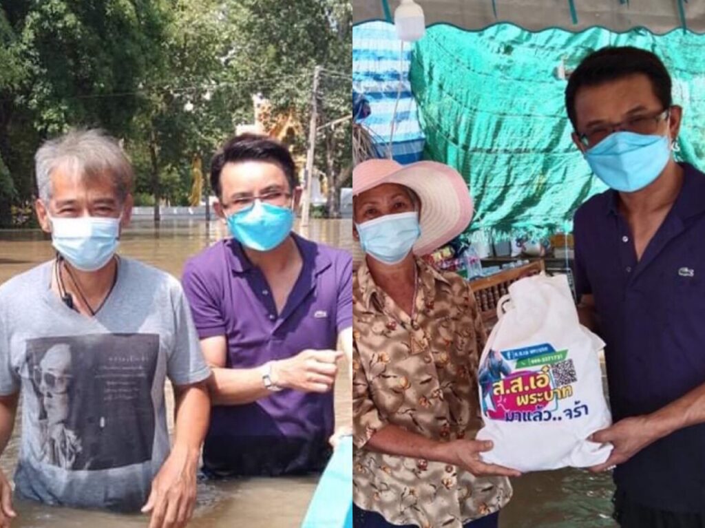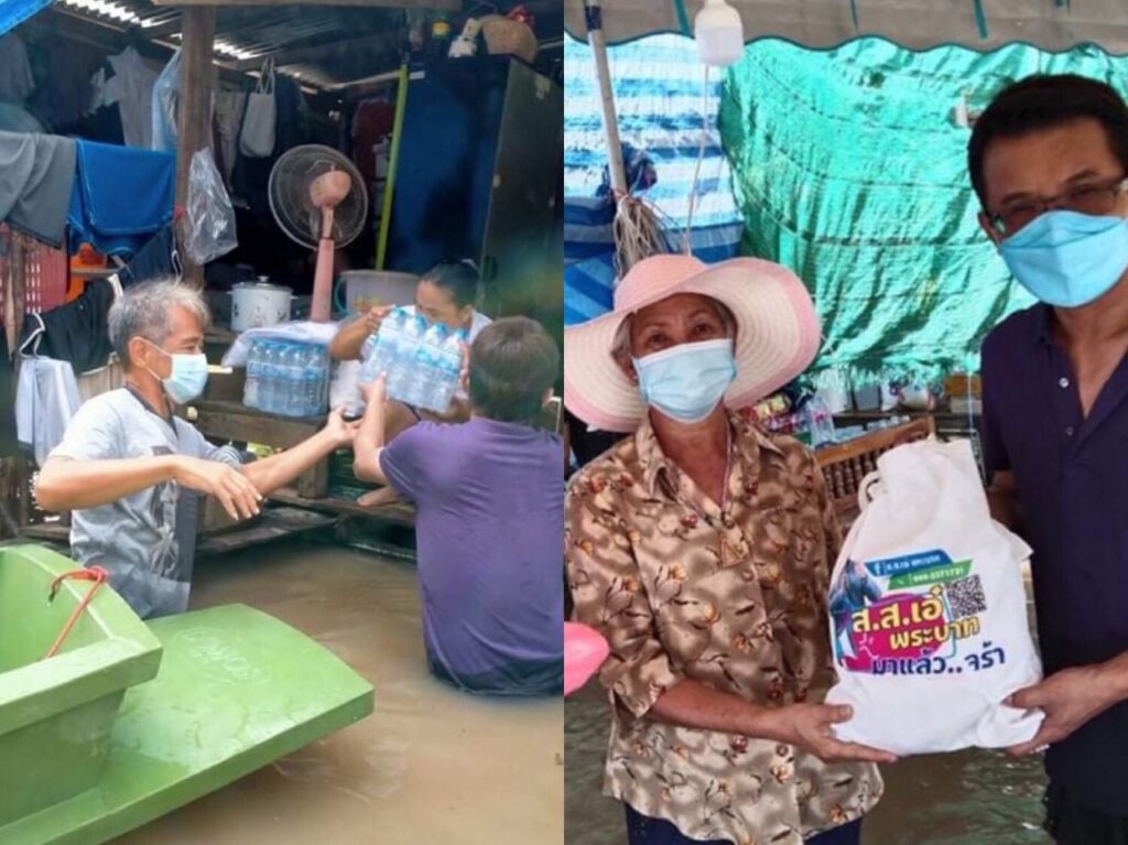ของพระเอกชื่อดังมิกค์ทองระย้า จมน้ำสลดแม้แต่สุนัขยังต้องอาศัยอยู่บนหลังคาด้านแม่พระเอกชื่อดังเป็นตัวแทนของชุมชนออกมารับถุงยังชีพของส.ส. เอ๋พระบาท