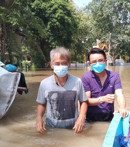 เมื่อวันอาทิตย์ที่3 ตุลาคม2564 ที่ผ่านมาดาราอาวุโสหนุ่มจีสตาร์ดารานักแสดงจากละครชายไม่จริงหญิงแท้ควงคู่นัยสุขสกุลจากละครเรื่องทุ่งเสน่หาลุยน้ำท่วมช่วยเหลือผู้ประสบภัยที่ชุมชนวัดเชิงรากจ.สระบุรีถึงกับอึ้งบังเอิญเจอบ้าน
