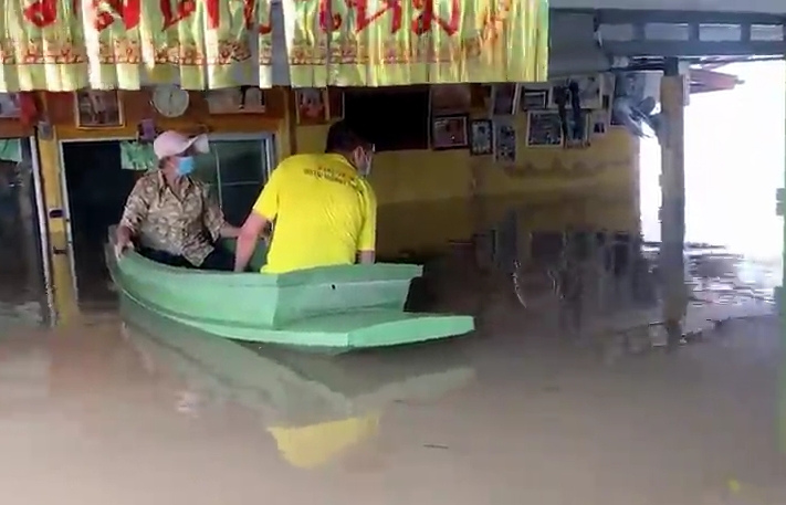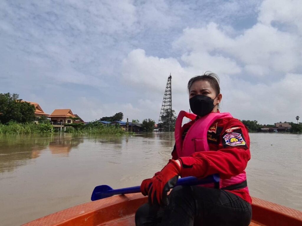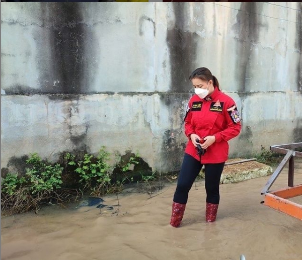 “นาทีที่ทีมงานลงพื้นที่และไปเจอแม่น้องมิกค์ ทองระย้า พอดี น้ำขึ้นสูงเร็วมาก @mik_thongraya”