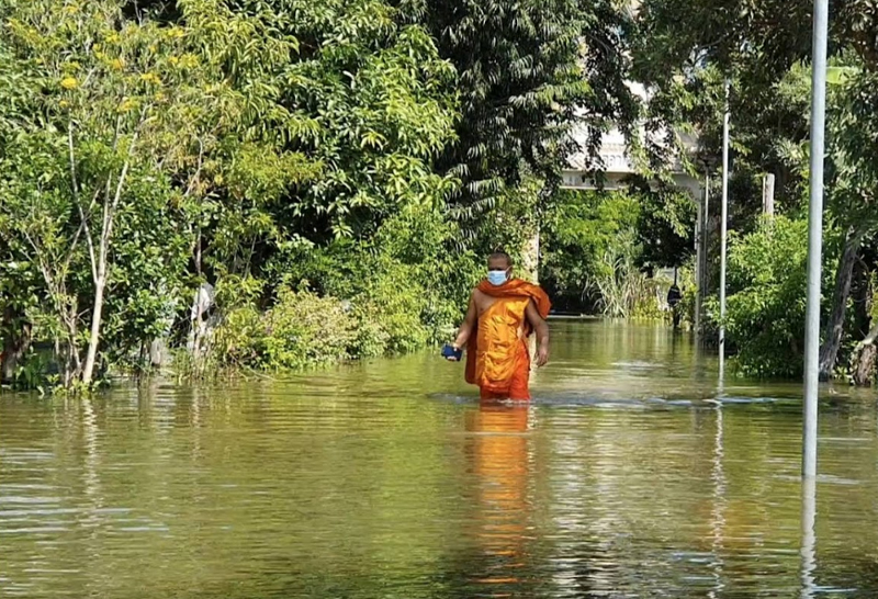 น้ำอ่างลำเชียงไกรตอนล่างไหลมานับร้อยกิโลเมตร เข้าท่วมพื้นที่บ้านตลาดประดู่พิมาย พระเณรเดือดร้อนน้ำท่วมวัดสูง