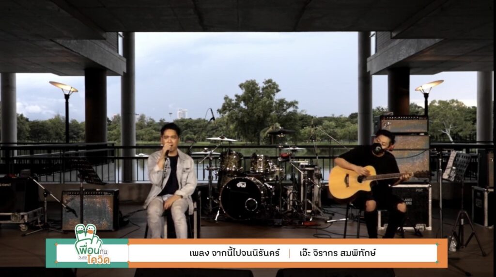 กลับมาจับไมค์ร้องเพลงได้อีกครั้ง พร้อมใบหน้าที่มีความสุข สำหรับนักร้องเสียงดี “เอ๊ะ จิรากร” ที่ได้ร่วมเป็นส่วนหนึ่งของรายการ “เพื่อนกัน วันติดโควิด” ในช่วง “กล่อมเพื่อน” ถึงจะห่างจากการเล่นคอนเสิร์ตไปนาน แต่การกลับมาสร้างความสุขผ่านเสียงเพลงของเอ๊ะในมินิคอนเสิร์ตครั้งนี้ ที่ถ่ายทอดให้ได้รับชมผ่าน AIS PLAY ก็ไม่เคยทำให้ผิดหวัง โดยเจ้าตัวหยิบเพลงฮิตมากล่อมเพื่อน ให้ฟังกันเพลินๆ อาทิ จากนี้ไปจนนิรันดร์, ไม่มีตรงกลาง,ระหว่างเราสองคน ฯลฯ เพื่อส่งต่อกำลังใจดีๆ ให้ทุกคนในวันที่ต้องฝ่าฟันกับโรคโควิด-19 ไปด้วยกัน