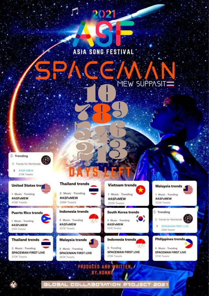 กลายเป็นดราม่าขึ้นมาจนได้ จากกรณีที่ นักร้อง-นักแสดงหนุ่ม “มิว ศุภศิษฏ์” ได้เป็นตัวแทนศิลปินไทยเพียงคนเดียว ที่จะได้เข้าร่วมเป็นส่วนหนึ่งของเทศกาลงานดนตรีสุดยิ่งใหญ่ของเกาหลีใต้ใน งาน 2021 Asia Song Festival (2021 เอเชีย ซอง เฟสติวัล)โดยหนุ่มมิว ทุ่มสุดตัวจัดเต็มกับโชว์เพลง SPACEMAN จนทำให้แฟนๆ ทั่วโลก ต่างพร้อมใจกันติด #ASFxMEW ทะยานขึ้นสู่อันดับ1 เทรนด์ทวิตเตอร์ที่อเมริกาอย่างรวดเร็ว