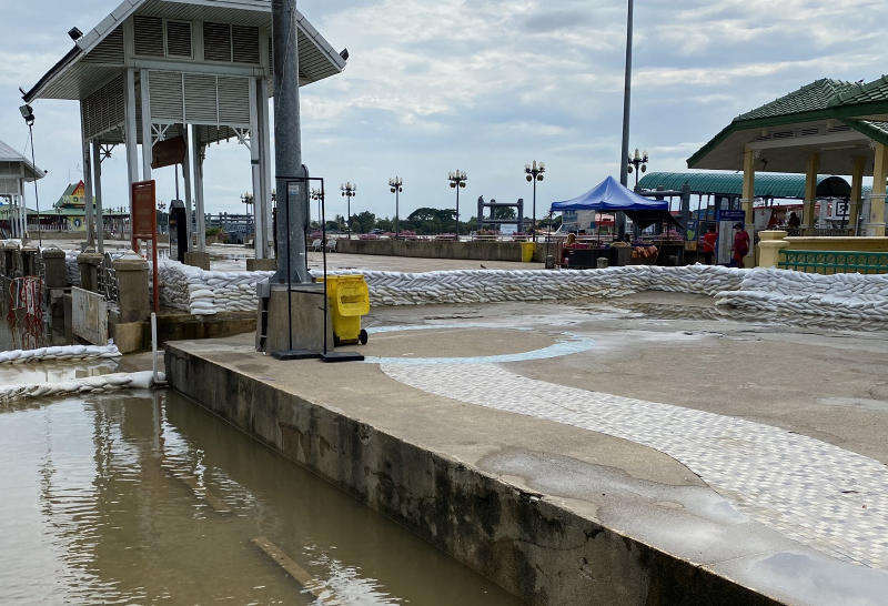 ปริมาณระดับน้ำบริเวณท่าน้ำนนท์ยังสูง เจ้าหน้าที่เตรียมแผนรับมือ พร้อมเสริมกระสอบทรายทันทีหากระดับน้ำเพิ่มสูงขึ้น
