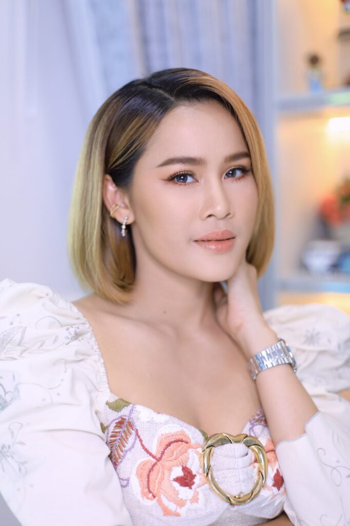 ส่วนเมคอัพของหนูเล็ก “พี่หนูเล็กต้องออกงาน Event เน้นโทนชุดสีขาว–ครีม ด้วยพื้นผิวหนูเล็กสีแทนสวย อยู่แล้ว และมีใบหน้าคมสวยแบบสาวใต้ ดอลล่าร์จึงเลือกเอาโทนน้ำตาลอมชมพูผสมทอง มาใช้เพื่อช่วยขับผิวให้ดูสว่างมีออร่ามากยิ่งขึ้น การแต่งตาไม่เน้นเส้นไลน์เน่อและขนตาที่หนามาก เพราะอยากให้หนูเล็กดูเด็ก อ่อนเยาว์ลง ดวงตาและขนตาจึงออกมาดูบางเบาสบายตา เมื่ออยู่ในงาน Event ที่ต้องถ่ายรุปบนเวทีที่แสงเยอะ ๆ หรือเจอหน้าจริงก็จะสวยแบบไม่หนักจนเกินไปค่ะ” ดอลล่าร์เผยเคล็ดลับความสวยของทั้ง 2 สาว