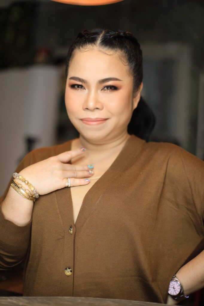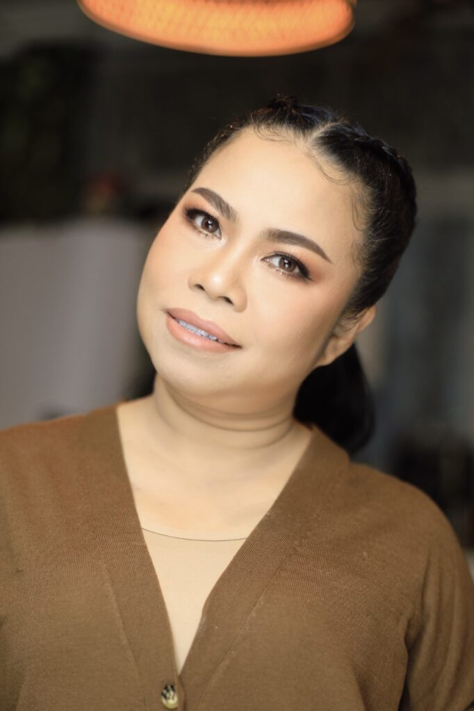 โดย ดอลล่าร์เล่าถึงความสวยของ ตุ๊กกี้ หรือครูเพ็ญศรีให้ฟังว่า “โจทย์ของพี่ตุ๊กกี้ในการแต่งหน้าในลุคนี้คือ ต้องสวยทน และปรับเปลี่ยนเสื้อผ้าได้หลากหลายสไตล์ ความสวยทน คือ การแต่งหน้าในแบบที่ไม่ต้องเติมระหว่างวันเพิ่มอีก นอกจากนี้ยังไม่สามารถคาดเดาได้ว่าจะต้องเปลี่ยนกี่ชุด ดอลลาร์จึงเลือกใช้การแต่งหน้าสีน้ำตาลเอิร์ทโทนนำ เน้นไปที่คิ้วและตาของพี่ตุ๊กกี้เค้าที่สวยได้รูปอยู่แล้ว ทำให้สวยเด่นมากยิ่งขึ้น ตาคิ้วสำคัญมาก ๆ ณ ช่วงเวลานี้ แม้ว่าจะต้องสวมแมส ดวงตาและโครงคิ้วต้องโดดเด่น แบบทะลุแมสได้ตลอดวันค่ะ”
