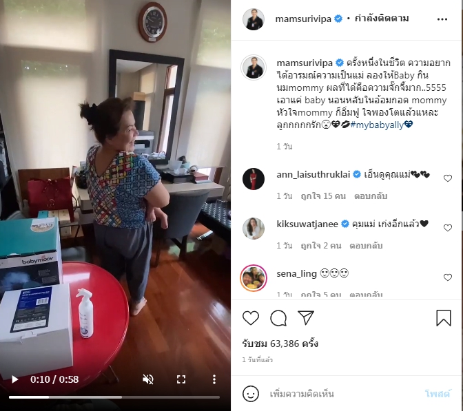 ล่าสุด หนูแหม่ม ได้ออกมาโพสต์คลิปที่สามีได้แอบถ่ายโมเมนต์ที่รอคอยมานานกว่า 25 ปีของชีวิตคนเป็นแม่ โดยหนูแหม่มได้ระบุแคปชั่นเอาไว้ว่า “ครั้งหนึ่งในชีวิต ความอยากได้อารมณ์ความเป็นแม่ ลองให้Baby กินนมmommy ผลที่ได้คือความจั๊กจี้มาก..5555 เอาแค่ baby นอนหลับในอ้อมกอด mommyหัวใจmommy ก็อิ่มฟู ใจพองโตแล้วแหละลูกกกกกรัก#mybabyally”