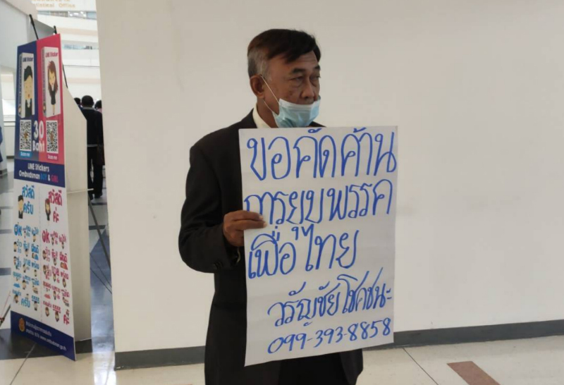 นอกจากนี้ ขอให้จับตาการประชุมใหญ่พรรคเพื่อไทยในวันที่ 28 ตุลาคมนี้ ว่ายังมีการนำลายมือนายทักษิณไปใช้ในที่ประชุมหรือไม่ และระหว่างการยื่นหนังสือของนายเรืองไกร มีนายวรัญชัย โชคชนะ นักกิจกรรมทางการเมือง มายืนชูป้ายคัดค้านการยื่นยุบพรรคเพื่อไทยด้วย