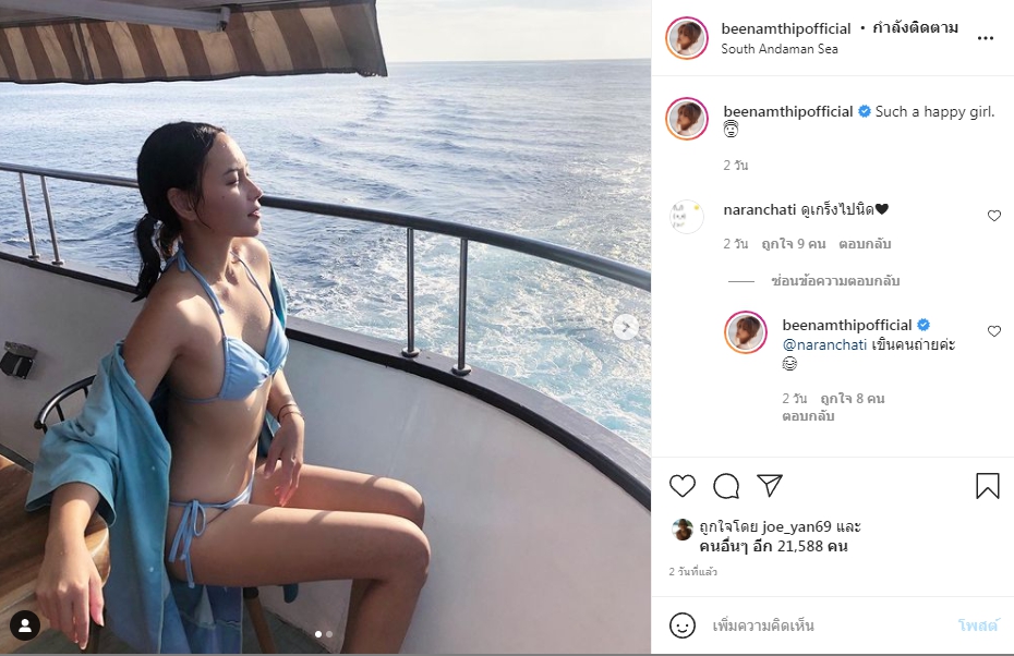 อย่างล่าสุดเจ้าตัวก็ออกมาปล่อยซีนเด็ดอีกครั้งในชุดว่ายน้ำทูพีซสีฟ้าสุดเซ็กซี่ ล่องเรือหารักอยู่กลางทะเล งานนี้บอกเลยว่า สวยแซ่บยืนหนึ่งไม่มีใครเทียบจริง ๆ ทั้งท่าโพส ทั้งอินเนอร์จัดเต็ม ยกให้เป็นนัมเบอร์วันไปเลยค้า ที่มาพร้อมกับแคปชั่นบอกว่า “Such a happy girl.” และแน่นอนพอภาพเซตนี้ได้โพสต์ออกไป ก็มีชาวเน็ตเข้ามาคอมเมนต์ชื่นชมความเซ็กซี่พร้อมกดไลก์ให้กับสาวบีอย่างล้นหลาม
