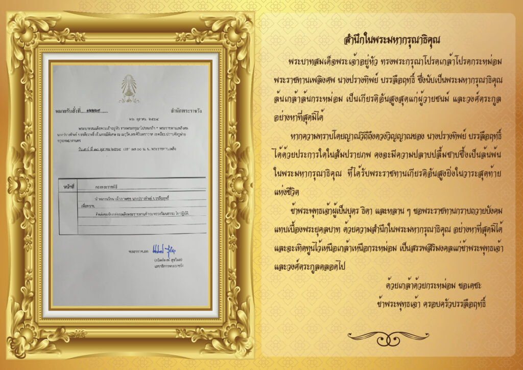 พระราชทานเพลิงศพคุณแม่ “ปรางทิพย์” กรณีพิเศษ ครอบครัว “บรรลือฤทธิ์” น้อมสำนักในพระมหากรุณาธิคุณ