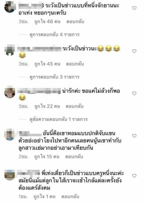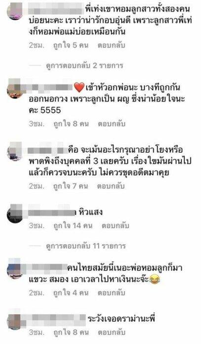 ซึ่งภาพดังกล่าวได้โพสต์ออกไป ก็เหมือนเป็นภาพครอบครัวอบอุ่นธรรมดาที่พ่อแสดงความรักต่อลูก แต่ทว่าภาพดังกล่าวเหมือนมาผิดเวลา งานนี้ทำเอาแฟนๆ แห่ข้ามาแสดงความคิดเห็นด้วยความเป็นห่วงกันเพียบว่า หิวแสง ,ระวังเป็นข่าวแบบที่หนึ่งจักยานนะ อาเท่ง หยอกๆนะครับ ,อย่าโยงนะ ,อันนี้คือเขาหอมแบบปกติจับเเขนด้วยอ่ะอย่าโยงไปหาอีกคนเลยคนนู้นเขาทำกับลูกสาวเเย่มากอย่าเอามาเทียบกัน,น่ารักค่ะ ขอแค่ไม่ล้วงก็พอ, ระวังเจอดราม่านะพี่, เป็น ผญ ซึ่งน่าน้อยใจนะคะ 5555, อันนี้แค่หอมน่ารักๆค่า อันนั้นจกเลยก็ไม่ไหว เป็นต้น