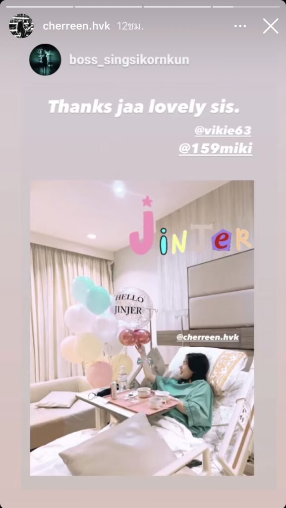 ขณะที่ทางด้านสามีของ เชอรีนก็ได้โพสต์ภาพลูกสาวภาพแรกของน้อง “JINJER” ลงอินสตาแกรม พร้อมกับเขียนแคปชั่นไว้ว่า “My lovely little Jinjer has arrived.Thank you @cherreen.hvk for the most perfect present kaa.1 Nov.2021”