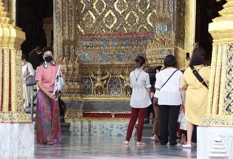 นางศุภลักษณ์ เปี่ยมวุฒิ นักท่องเที่ยวชาวไทย เล่าให้ทีมข่าวฟังว่า ในวันนี้ตั้งใจมาทำบุญวันเกิดครบรอบ 60 ปี ส่วนตัวมองว่าการเปิดประเทศรับนักท่องเที่ยวถือเป็นเรื่องที่ดี ถือว่าเป็นการกระตุ้นปัจจัยด้านเศรษฐกิจ แต่การรับนักท่องเที่ยวเข้ามานั้น ต้องมีการจัดทำให้เป็นระบบ เพื่อลดการแพร่เชื้อโควิด-19 ขณะเดียวกันที่วัดพระแก้ว ได้มีมาตรการป้องกันโควิด-19 อย่างเข้มงวด ไม่ว่าจะเป็นการลงทะเบียน วัดอุณหภูมิ และล้างมือด้วยเจลแอลกอฮอล์ เพื่อคัดกรองนักท่องเที่ยวก่อนเข้ามาในสถานที่ท่องเที่ยวเพื่อป้องกันการแพร่ระบาดของเชื้อโควิด-19ในเบื้องต้น