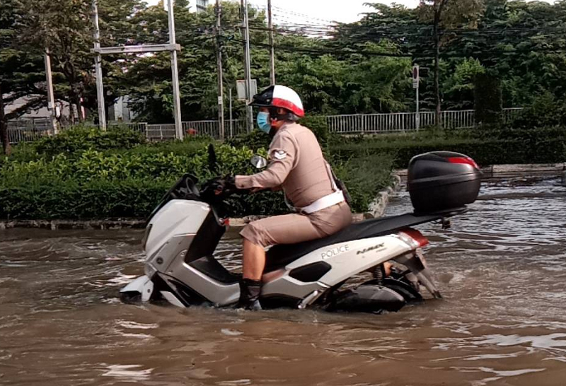 น้ำทะเลหนุนสูง ส่งผลน้ำท่วมริมเจ้าพระยา เจริญนคร ท่าเรือ ถ.ปู่เจ้า วัดเขมาฯ นนทบุรี เจ้าหน้าที่แนะเลี่ยงเส้นทาง