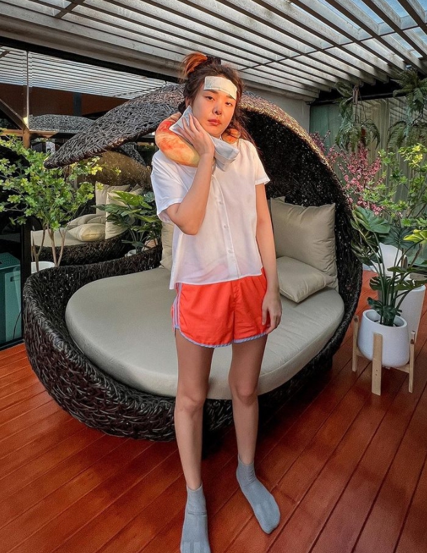 “เมื่อวานไปฉีดบูสเตอร์เข็ม 3 มา ก็คือ โมเดอร์นา โอ้โห คือปวดไปทั้งแขนเลย ตอนนี้ก็รู้สึกเหมือนไม่สบาย แบบรุมๆ เศร้า ดูสิ จมูกฉันยังดำเลย ฮือ เป็นกำลังใจให้ฉันด้วยนะ ใครไปฉีด โมเดอร์นา ควรจะลางานวันรุ่งขึ้นนะทุกคน”