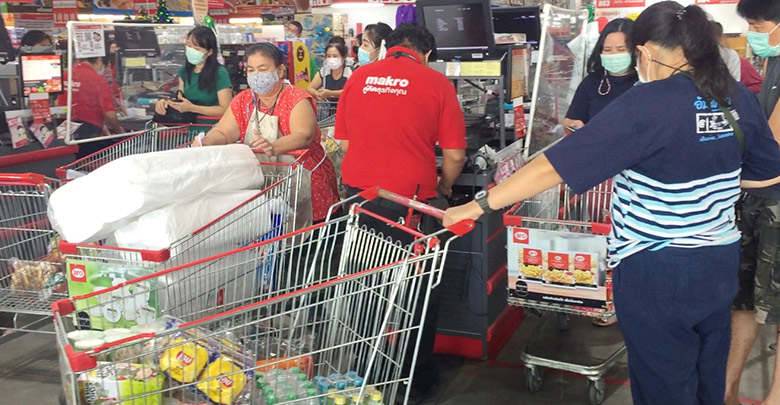 ที่ห้างสรรพสินค้าแม็คโคร (สาขาปทุมธานี) ตำบลบ้านฉาง อำเภอเมืองปทุมธานี จังหวัดปทุมธานี ประชาชนในพื้นที่จำนวนมากใช้เวลาช่วงวันหยุดเสาร์อาทิตย์ ทยอยซื้อของใช้จำเป็น และ ของแห้ง ตามห้างสรรพสินค้าต่างๆ เพื่อเตรียมความพร้อมสถานการณ์การแพร่ระบาดไวรัสโควิด-19 หลังจากที่จังหวัดปทุมธานี เพิ่มมาตรการควบคุมการแพร่ระบาดของโรคโควิด-19 เริ่มตั้งแต่วันที่ 2 มกราคม 2563 ในส่วนของจังหวัดปทุมธานีสถานการการแพร่ระบาดของโควิด-19 รอบใหม่นั้นมีผู้ติดเชื้อแล้ว จำนวน 14 ราย